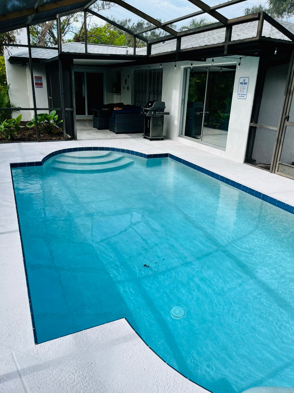Beautiful home with amazing pool and landscape, 15 minutes from Siesta Key Beach, 25 minutes from Lido Key Beach and Venice Beach. Close to grocery stores, parks, biking trails, shopping and restaurants. Enjoy the pool, entertain your family in our tiki bar, meditate in our amazing backyard or rest in our tastefully decorated bedrooms. Two pets under 30 pounds are allowed. Our pet fee is $150/dog. Please enter your pet when you complete the reservation.