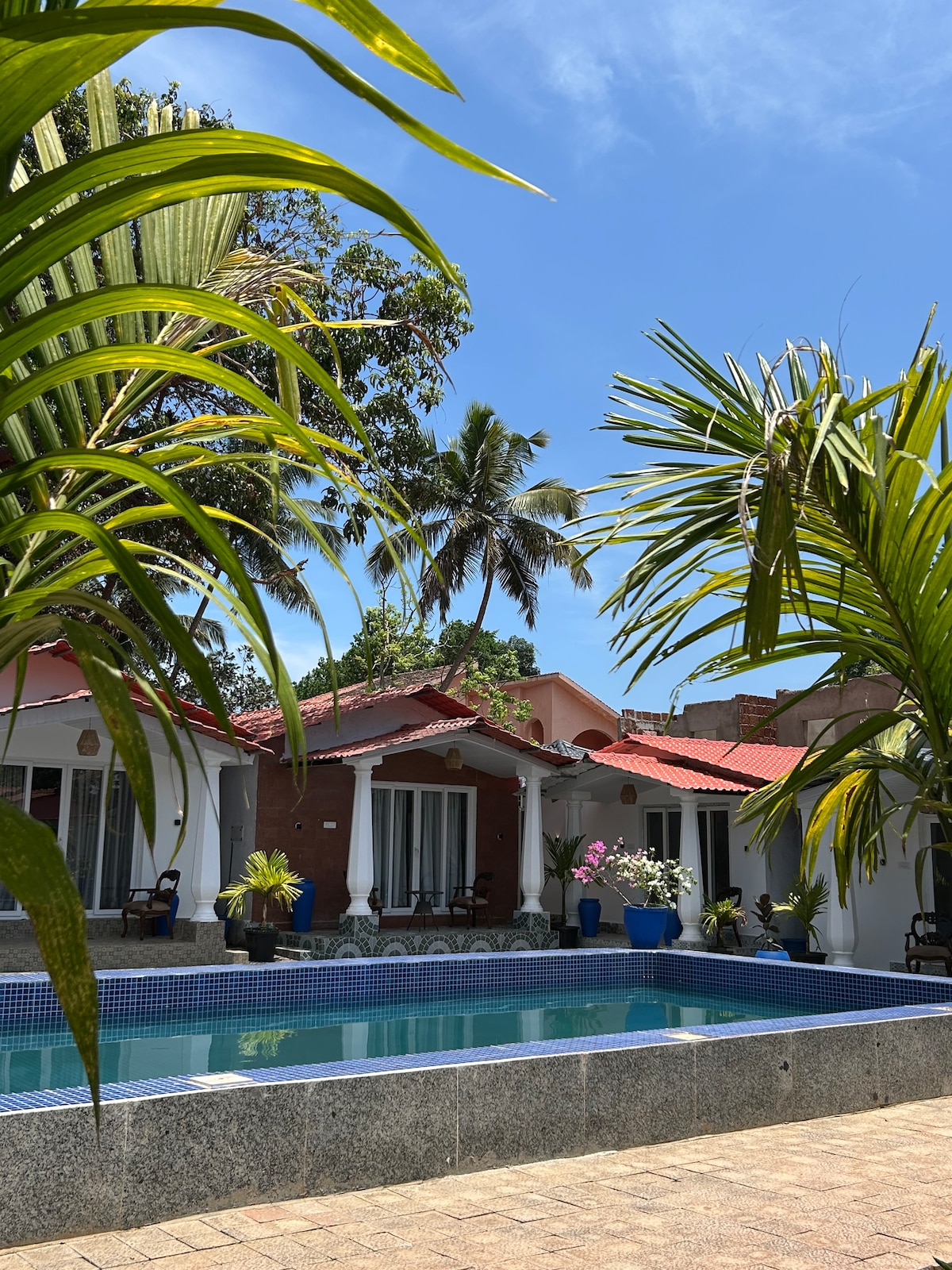 Vaayu的靈感來自「風元素」,是一個寧靜的河畔度假勝地,沿着Talpona河,並設有游泳池。 這間雙臥室公寓將現代舒適與20世紀70年代果阿的魅力融為一體。 在通風的客廳放鬆身心,從整套旅居欣賞河景,並在四周環繞椰子樹的泳池旁放鬆身心。 這個寧靜的避難所設備齊全的廚房可供自製餐點,是體驗果阿永恆的美麗、寧靜和與大自然的聯繫的完美度假勝地。
