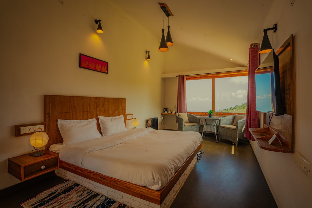 Arsh是我們為想要安靜的情侶而設的客艙。 大型玻璃窗外山景盡收眼底,溫暖的木質裝飾更增添了溫馨氣氛,而私人按摩浴缸則是整間旅居的亮點。 在陽台品茗,在營火旁聆聽故事,開啟美好的一天。 如果你必須入住,快速WiFi和備用電源讓工作變得輕鬆。 從德里出發,車程約為7至8小時。 最近的火車站是Kathgodam。 酒店提供免費泊車位。 小木屋、按摩浴缸和火坑是你的私人空間。 我們保持低調。 夜晚是為星星和睡眠而設。