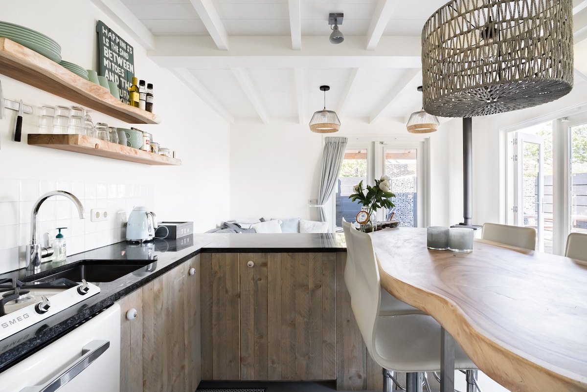 Dit appartement biedt veel privacy met een eigen beschutte tuin en ingang. Beneden is een gezellige woonkamer met open keuken en de openslaande deuren zorgen voor veel licht en ruimte. Naast de vloerverwarming is er een knus houtkacheltje. Via een open trap betreed je het slaap gedeelte, waarin 1 ruim 2 persoonsbed en 2 losse single bedden staan, gedeeltelijk afgeschermd door wanden. Voor het meebrengen van uw hond rekenen we 15 euro contant bij aankomst. Alle ruimtes zijn afgewerkt met stijlvolle natuurlijke materialen. De gehele begane betonvloer is voorzien van vloerverwarming. De sfeervolle woonkamer heeft een bankstel, houtkacheltje en TV met Netflix ( geen TV aansluiting). De keuken wordt deels afgescheiden door de boomstam keukentafel en granieten aanrechtblad. De keuken biedt de mogelijkheid om te koken met retro Smeg apparatuur en is voorzien van gasstel, koelkast, vaatwasser, combi-magnetron en waterkoker. De badkamer ademt een Zuidelijke sfeer met een vloer van pebble stones en rivierstenen waskom. In de afgesloten wasruimte staat een wasmachine en stofzuiger. Er is een aparte toilet ruimte. De slaapzolder is verdeeld in twee gedeeltes, met aan de ene kant van de wand het luxe twee persoonsbed en aan de andere kant de twee losse eenpersoonsbedden. De ruimte met de houten vloer en bedden voelt direct ontspannen aan. Het appartement ligt op loopafstand van het oude centrum, waar een gezellige dorpskern met winkeltjes is. Met de fiets ben je binnen 10 minuten op het strand. Het appartement is volledig nieuw gebouwd en is gezellig en heel licht qua sfeer, je voelt je snel thuis. Je kunt zelf volledig koken, als je dat wilt. Zodra je binnen stapt krijg je een vakantie gevoel, aangezien de inrichting een relaxte beach stijl is. De afwerking is heel luxe. Gasten van het appartement mogen tegen half tarief meedoen met de yoga lessen van Yogastudio Ouddorp. De studio ligt naast het appartement. De gasten hebben een eigen prive tuin, die volledig word afgeschermd door een schutting. In de tuin staat een gezellig zitje, relax stoelen en grote picknick tafel. Mijn vriend en ik zijn beschikbaar per mail, whats app en telefonisch. Het pittoreske Ouddorp is een klein badplaatsje aan zee met een gezellige dorpskern en een zandstrand van maar liefst 17 kilometer lang. De natuur is prachtig en de omgeving leent zich bij uitstek om er te surfen, fietsen en wandelen. Het centrum is letterlijk op loopafstand. Een heerlijke echte bakker zit om de hoek. De supermarkten zijn ook heel dichtbij. Rondom de kerk zijn gezellige winkeltjes en terrasjes. Het strand is wijds en heerlijk met een aantal gave beachclubs. De bushalte is aangrenzend aan de tuin. Parkeren is gratis op de Stationsweg, direct naast het appartement.
