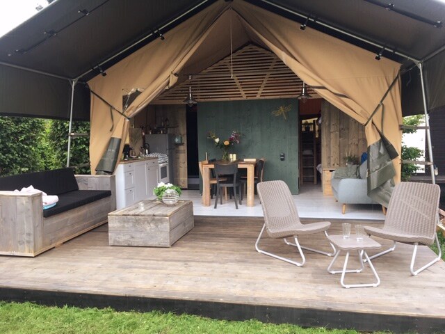 Ontsnap aan de dagelijkse sleur en boek nu onze luxueuze safaritent! De safaritent heeft 1 tweepersoonsbed, een stapelbed en een bedstee, een volledig uitgeruste keuken, een eethoek en een badkamer met regendouche. Een overdekt terras, met zicht op de polder. De tent is net geplaatst, er ligt nog geen mooi grasveld. Daarom bieden wij de tent aan voor een tarief van € 115 in plaats van € 125 per nacht. Mogelijkheid tot bijboeken van een HOTTUB!.