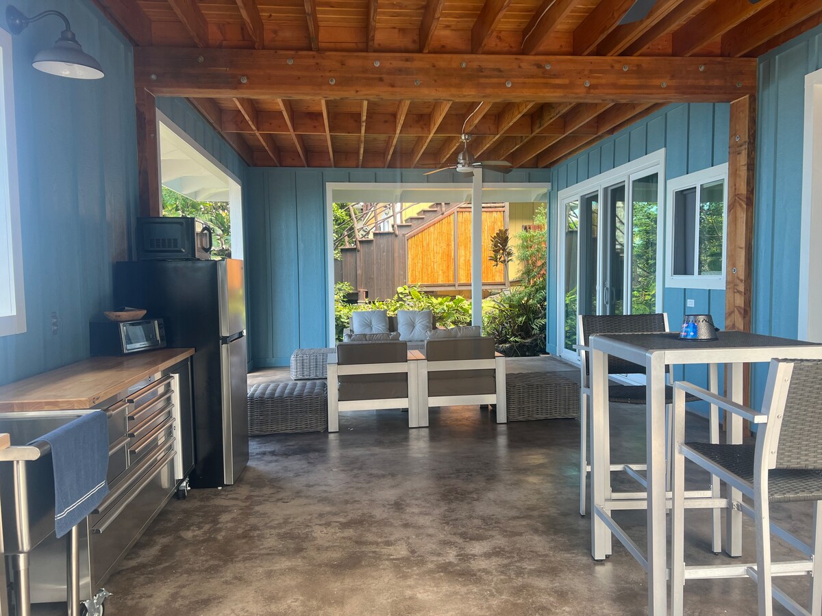 Aloha & Welcome to your Private Coastal & Sunset Experience! This spacious Living Room + 1-bedroom, 1-bath guest suite and private lanai is Located in quiet Kona Paradise, with just a 4-min drive to stunning Pebble Beach. Enjoy ocean views, Sunsets, Moonsets, new appliances, Streaming TV, WiFi, BBQ & 3-burner grill. Easy front row parking with private entrance. We’re Superhosts living on property—available to support your stay while respecting your privacy. Relax & enjoy Island Living.