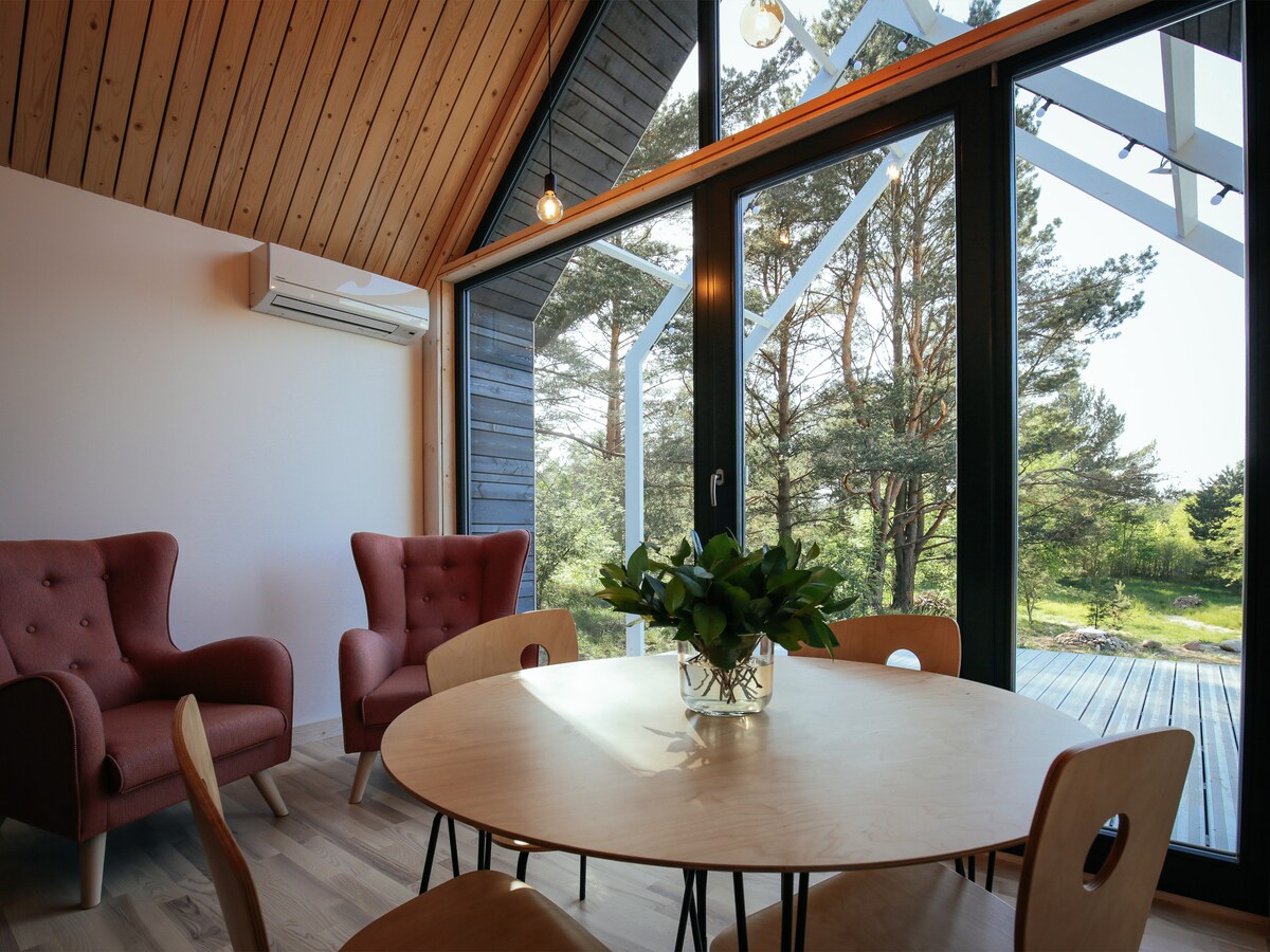 This is a cottage overlooking the meadow and the nearby forest. The cottage has a small terrace, where you can enjoy your time and relax. There is a small kitchen area and a bathroom with a shower. The cottage is located in country estate Lūķi, 2km to the beach. The estate has a picturesque landscape with large oaks, a tea garden, an authentic sauna, and garden shed. There is also a salon with an exhibition of handicrafts.