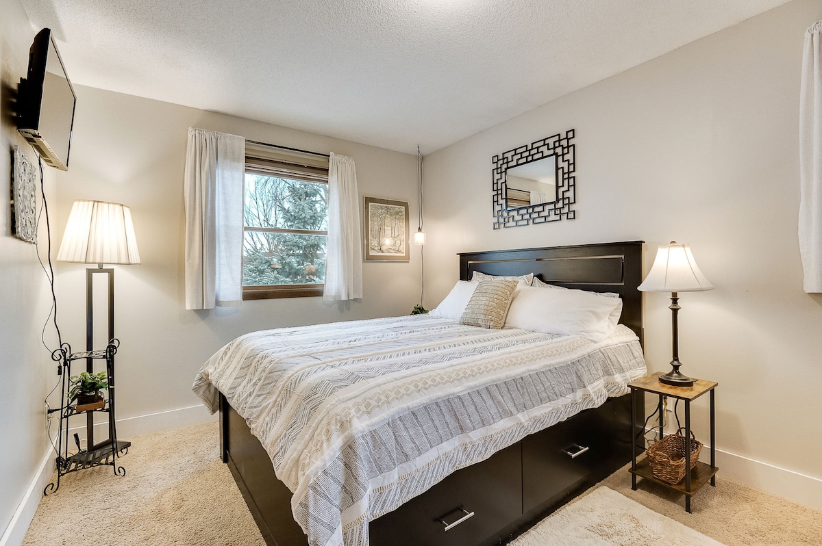 歡迎光臨!這間舒適的兩房套房配有壁爐和按摩浴缸,位於 Summit Avenue 正下方,毗鄰 West Seventh 和 Grand Avenue。 步行即可抵達本地餐廳、Grand Casino Arena 及藝術中心。 * Grand Casino Arena:步行 10 分鐘 * Ordway:步行 15 分鐘 *步行不到一英里即可抵達多間餐廳/啤酒廠。 * 機場地鐵 54 號線前往市中心。8 英里 這間套房位於 Lako'tyapi 土地和 Wahpekute - Octi' Sakowin Oyate 領地上。