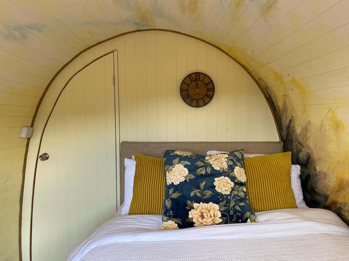 Romantic luxury loft for two on a 40-acre private estate in the Wye Valley National Landscape. Perfect for honeymooners, stargazers, proposals, anniversaries, or milestone moments. Enjoy panoramic Mork Valley views through the feature arched window, vaulted oak beams, and a cozy fire pit (logs & marshmallows incl.). Includes a generous welcome hamper and exclusive access to our dark skies, meadows, stream, and woodland. A peaceful, magical retreat with high-end, curated experiences available.