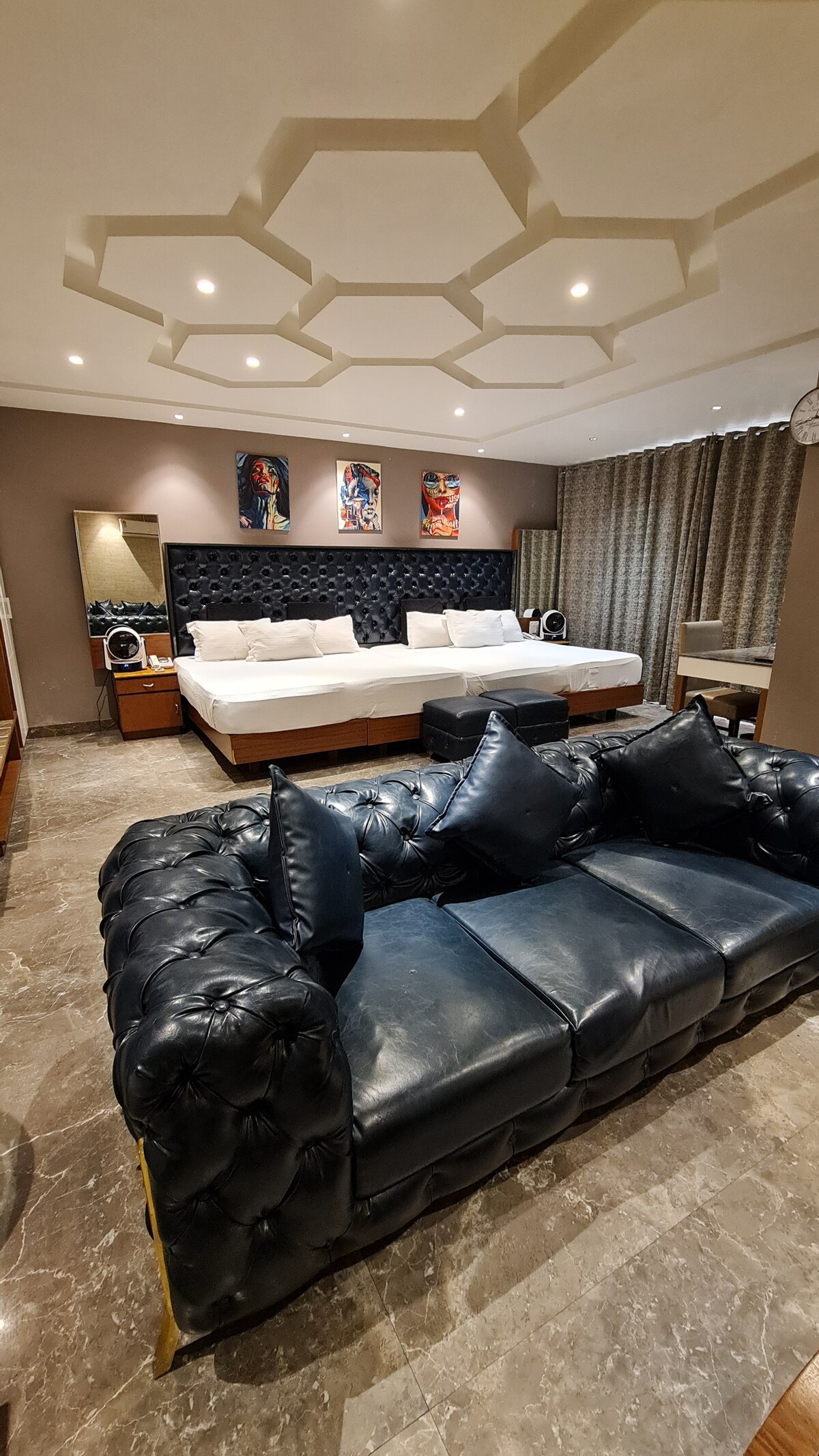 這是一間套房,位於皇家城堡大C R公園精品酒店的套房。 有趣的功能: -6英尺長床 - 1張沙發床 -65英寸LED電視 -500公升冰箱 - 8張沙發座位 非常適合家庭入住。