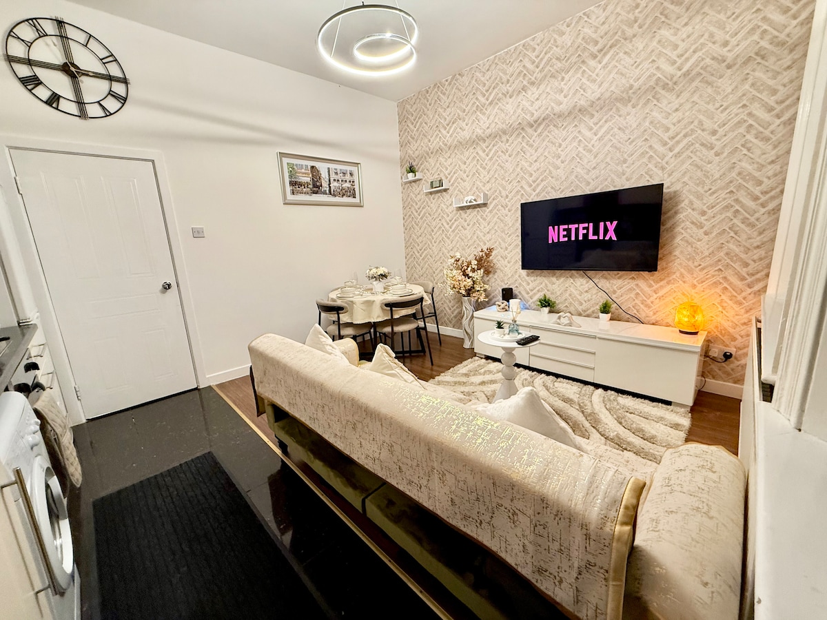 歡迎來到我們位於謝菲爾德充滿活力的市中心Fargate的現代時尚7人公寓。 它完美地位於Sheffield市中心。 這間現代化的空間非常適合家庭和團體入住,提供舒適、便利的住宿體驗,以及放鬆身心所需的一切。 距離坩堝劇院、冬季花園、和平花園、頂級餐廳、咖啡館、商店和交通工具僅幾步之遙,是潔淨、寬敞和難忘的Sheffield之旅的理想基地。
