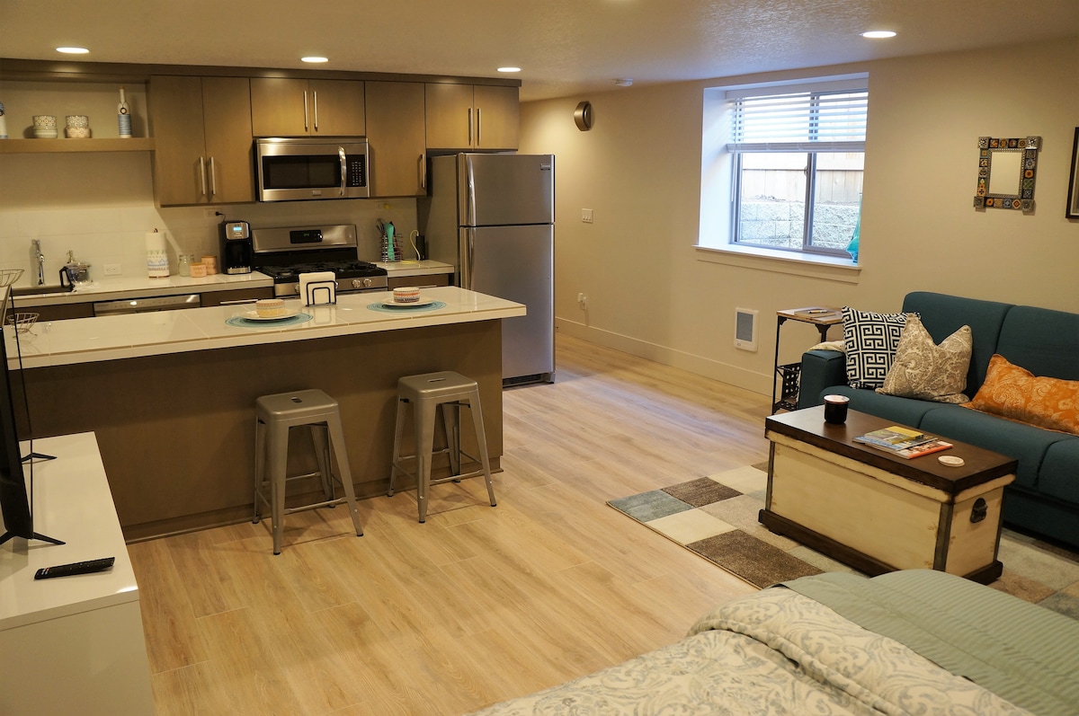 My wife, Raechel, and I originally designed and built this ADU ( accessory dwelling unit ) with the intention of living there full time, but due to a change of plans, it's available to you. The space was designed by Buckenmeyer Architecture, and was constructed by me. Our space features many unique elements such as: burnt cedar siding, 16' multi-slide window wall (please open and close slowly), and moveable cedar slat screens/ We hope you enjoy the space and neighborhood as much as we do!