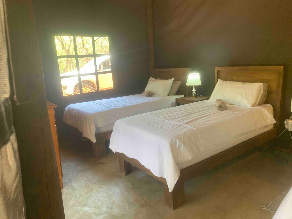 您在納米比亞最具冒險性的住宿體驗就在這裡…… 來探索納米比亞的獨特之地。距離Tsumeb僅15分鐘車程,距離Etosha國家公園一小時車程。享受未受污染的叢林環境的寧靜、美麗的山景和令人驚嘆的觀鳥。您將睡在豪華的偏僻帳篷中,配有私人泳池和寬敞的套房浴室。豪華帳篷裝潢雅致,且環保;所有電器均為太陽能供電。