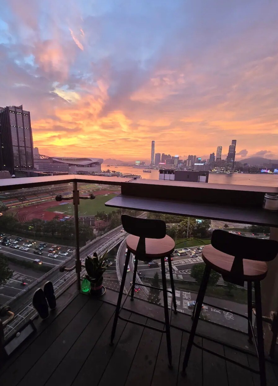 * king size bed upgraded spacious interior designed service apartment with a breath taking fireworks harbor view. located at the heart of the city in between wanchai and causeway bay 5 mins walk to MTR station, 5 mins walk to sogo, various types of cusines, massage, spas are all around the corner. *Harbour view balcony is exclusive * * Free gym access and skypool access* *5 mins walk to Harbour front.