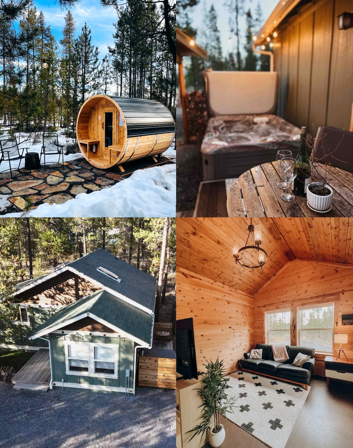 Location Highlights • Peaceful acre in Three Rivers • 30 min to Bend and Mt. Bachelor • 15 min to Sunriver Relax • Soak in the hot tub under the stars • Rejuvenate in the barrel sauna • Unwind by the fire pit • Drift off in a hammock with your favorite book Inside • Warm knotty pine walls and juniper accents • Full kitchen, WiFi, 2 baths • Eco-conscious with bio-based flooring Book now and kickstart your Central Oregon adventure!