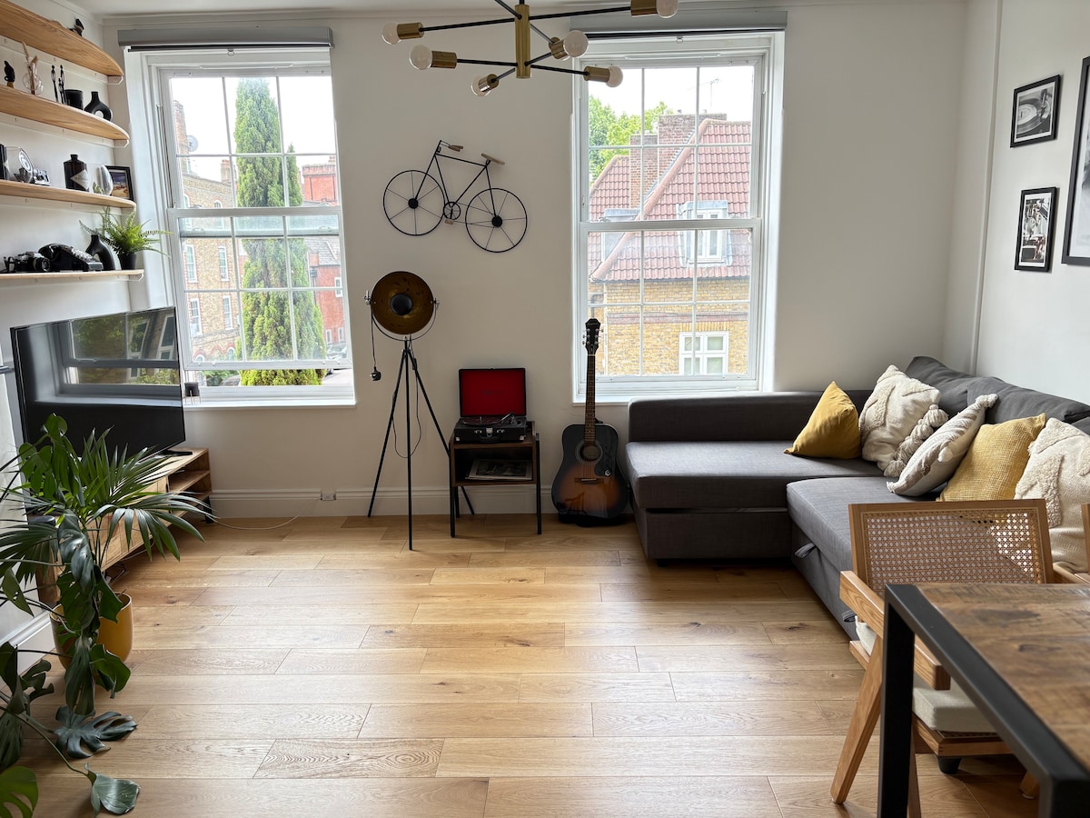 時尚的兩房小別墅,位於寧靜的死巷,步行5分鐘即可抵達地鐵站和上街的商店和餐廳。 新翻修至高標準,主臥室配有超級加大雙人床、街外停車位、高速WiFi、專用辦公室和設備齊全的廚房,配有咖啡機和洗衣機/乾衣機。 在陽台上享受新鮮空氣的早晨咖啡。 這個家外之家完美融合了寧靜的位置和城市的便利,充滿了原始的倫敦特色。