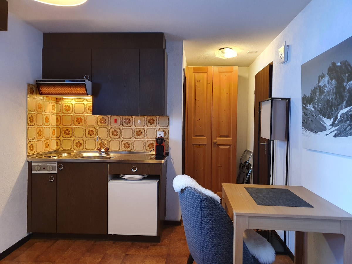 Peaceful and charming studio with a partial view to the Matterhorn. Nicely located at 4 minutes walking from Sunnegga lift. It is a comfortable and generous studio of 36sqm perfect for 2 or cute and cosy for 4. Fully equipped and newly refurbished. The kitchen is fully equipped including dishwasher. The main room has SMART TV (49 inches) and wireless internet connection. Please note there is 120 meter path/slope (approx 2minutes walking) from the road to the flat to access the flat.