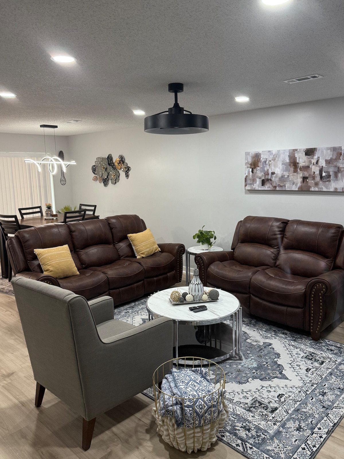 歡迎來到At Ease Retreat ,這是專為軍事旅客、高爾夫球團和戶外冒險家設計的Fort Bragg區域度假勝地。 這間3床+彈性空間的旅居設有智能門鎖、水療風格的主浴室、專用工作空間和咖啡吧,讓你輕鬆開始新的一天。 彈性房間非常適合瑜伽或放鬆,全圍欄的庭院讓寵物放心。 位於安靜、友善的社區!舒適和便利 請注意,所有睡房和全套浴室均位於二樓