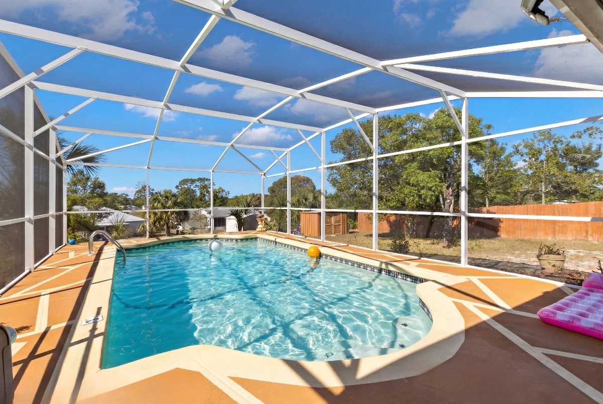 享受我們美麗的泳池房源,位於佛羅裏達州墨西哥灣沿岸的中心地區! 這間3間臥室/2.5間浴室的房源提供所有設施-封閉式私人和溫水泳池、放鬆水療、撞球桌、大螢幕智慧電視、免費Netflix、設備齊全的廚房、私人停車場等。 距離商業高速公路和Cortez大道僅幾分鐘路程,在那裡您可以找到許多餐廳、雜貨店和商店。 距離Weeki Wachee Springs州立公園僅3分鐘路程,距離Pine Island Beach Park僅12分鐘路程!