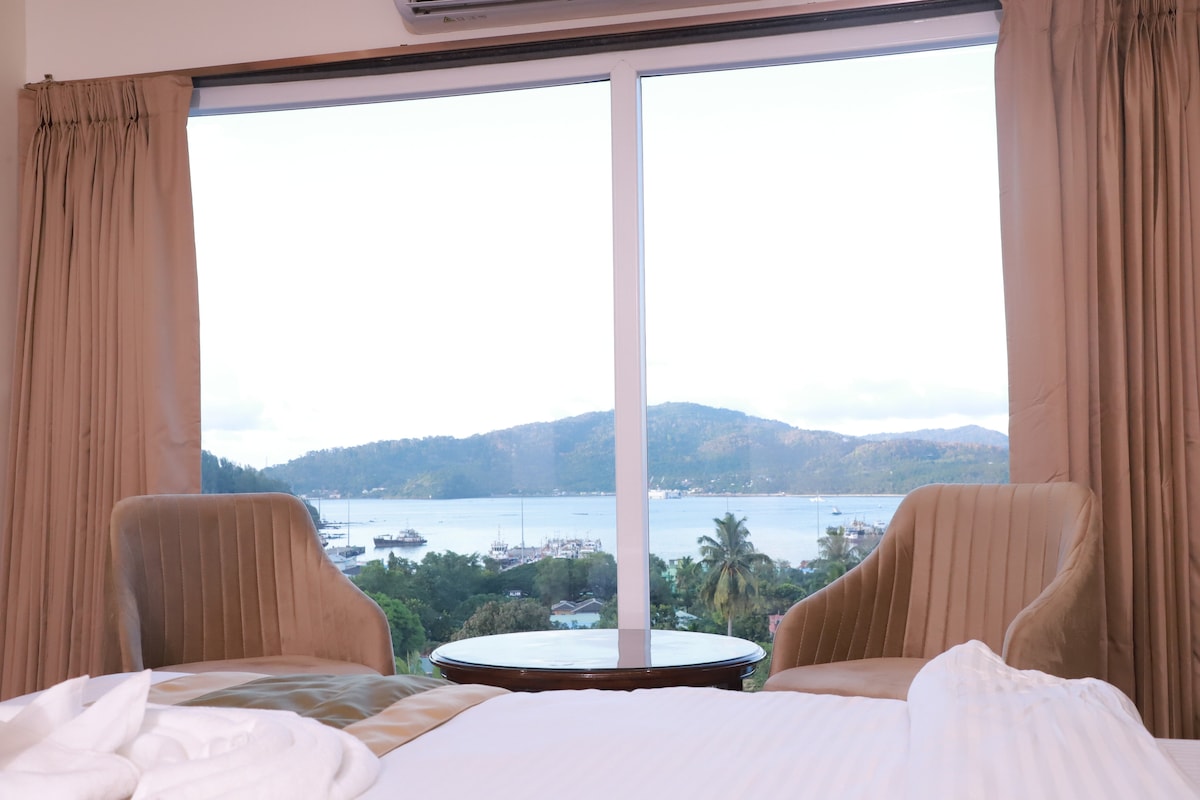 我們的經典海景客房經過精心裝潢,確保您最舒適和放鬆。 每間客房均設有豪華的加大雙人床,採用現代設計和現代裝飾,可欣賞海景。 房間設施包括迷你冰箱、咖啡/茶具、43英寸智能電視、熱水、吹風機、USB插座和免費洗漱用品。