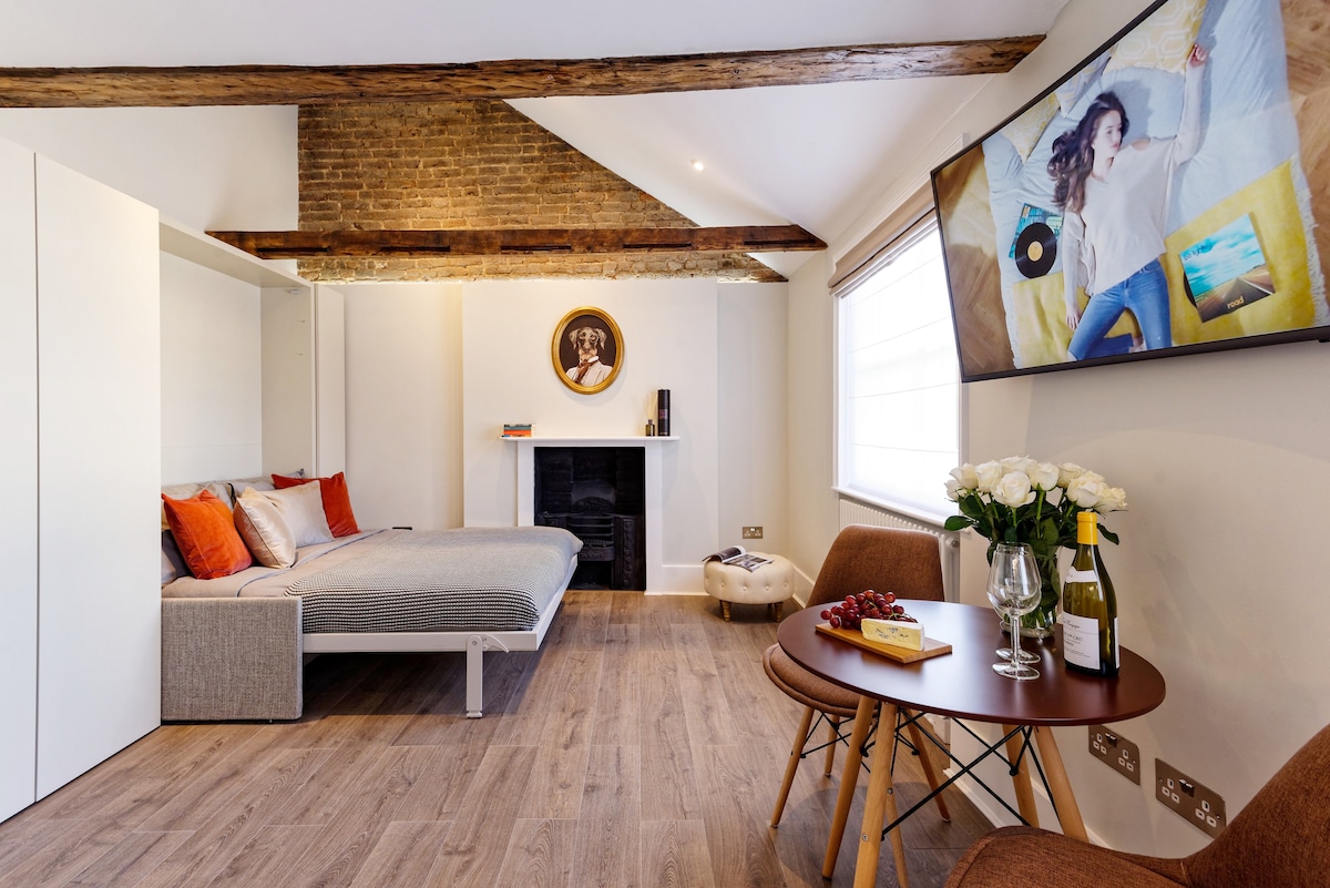 Large 1 bedroom with open plan living. NaturalMat (Same as Six Senses hotels) luxury European King Sized bed (160cm x 200cm). Bathroom with bath and shower and eco-toiletries provided. Fully Equipped Kitchen – Grind coffee machine, Joseph Joseph kitchenware, 4 ring gas hob, dishwasher, full size fridge freezer Smart TV & Comfort Cooling – For year-round comfort and entertainment. Weekday concierge and lift to all floors. We also happen to be London's No.1 sustainable operator!