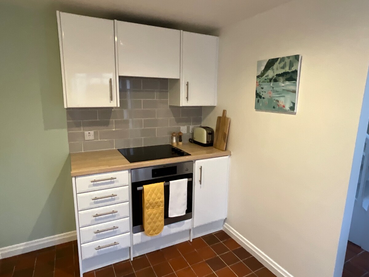 我們的Airbnb是一間舒適的雙人臥室。 獨自使用,裝潢符合高標準。Airbnb是「Bijou」{340平方英尺},樓上臥室和鄰近淋浴間。樓下起居區配有小廚房。 在澤西綠巷。鄉村,但前往海灘和戈雷港(Gorey harbour)及其餐廳、酒吧和咖啡廳都很方便。適合騎自行車和步行者。 一張雙人床,因此適合有乖巧狗或非常年輕的寶寶的夫婦。 提供安全的自行車寄存。
