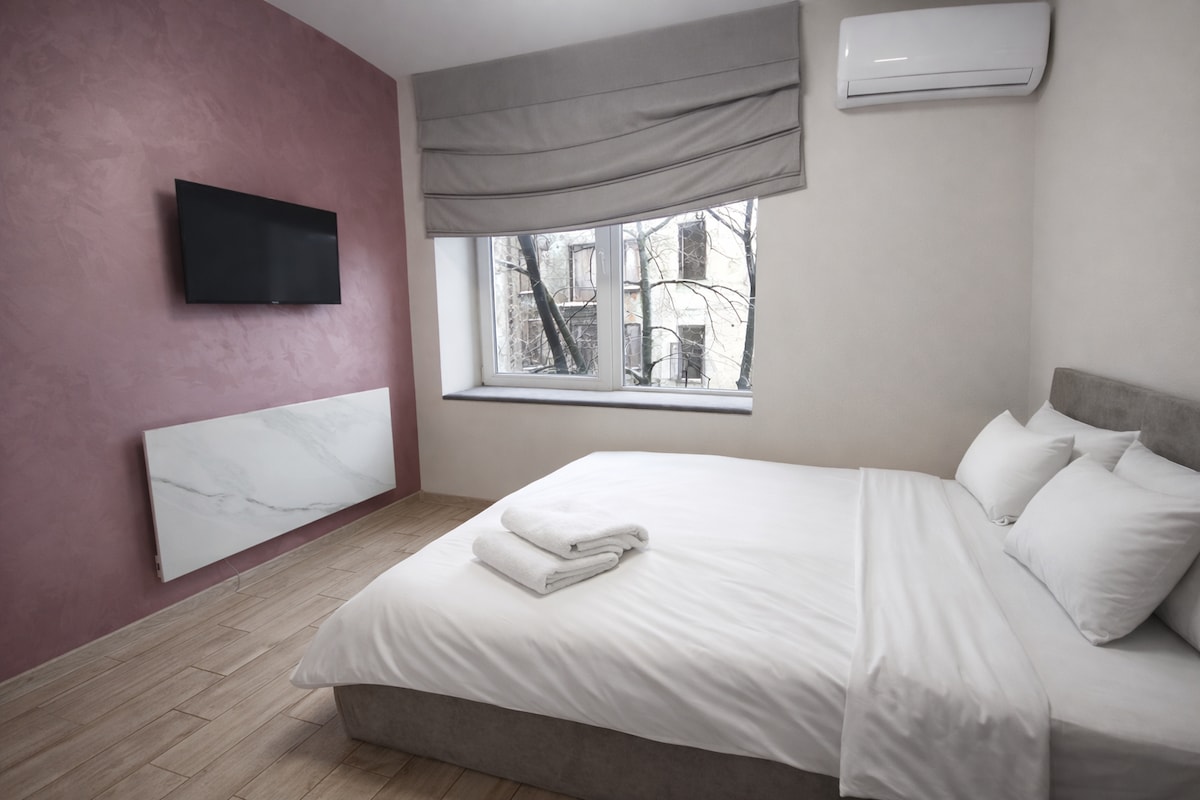 ✨備用電源/燈始終可用:公寓配有強大的充電站EcoFlow DELTA 2 Max ( 2400 W , 2048 Wh )。 因此,即使停電,你也能使用燈光,並為電器充電。 庇護所就在樓下的大樓內。 無須離開大樓。 有自來水和暖氣。 我們還在衣櫃中留有額外的暖氣,讓您感到舒適。 趁你的日期仍然可供預訂,立即預訂:)