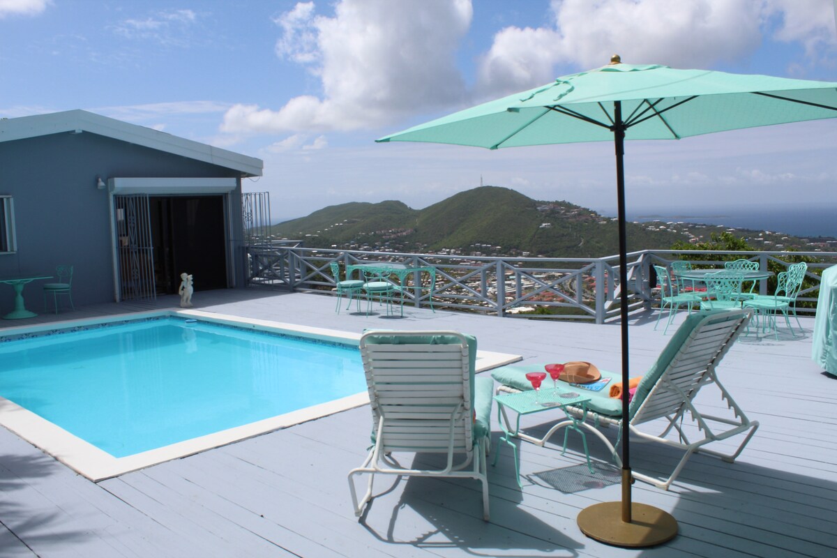 Caribia Cottage位於私人莊園中,只能通過電子門進入。 St.的壯麗全景 託馬斯港( Thomas Harbor )令人難忘,當該物業以前由一位著名的百老匯製作人擁有時,許多著名的明星都敬酒。 從小屋步行兩步即可抵達寬敞的遊泳池。 當大型遊艇、水上飛機和遊輪來來去去時,您可以欣賞加勒比最繁忙的港口。