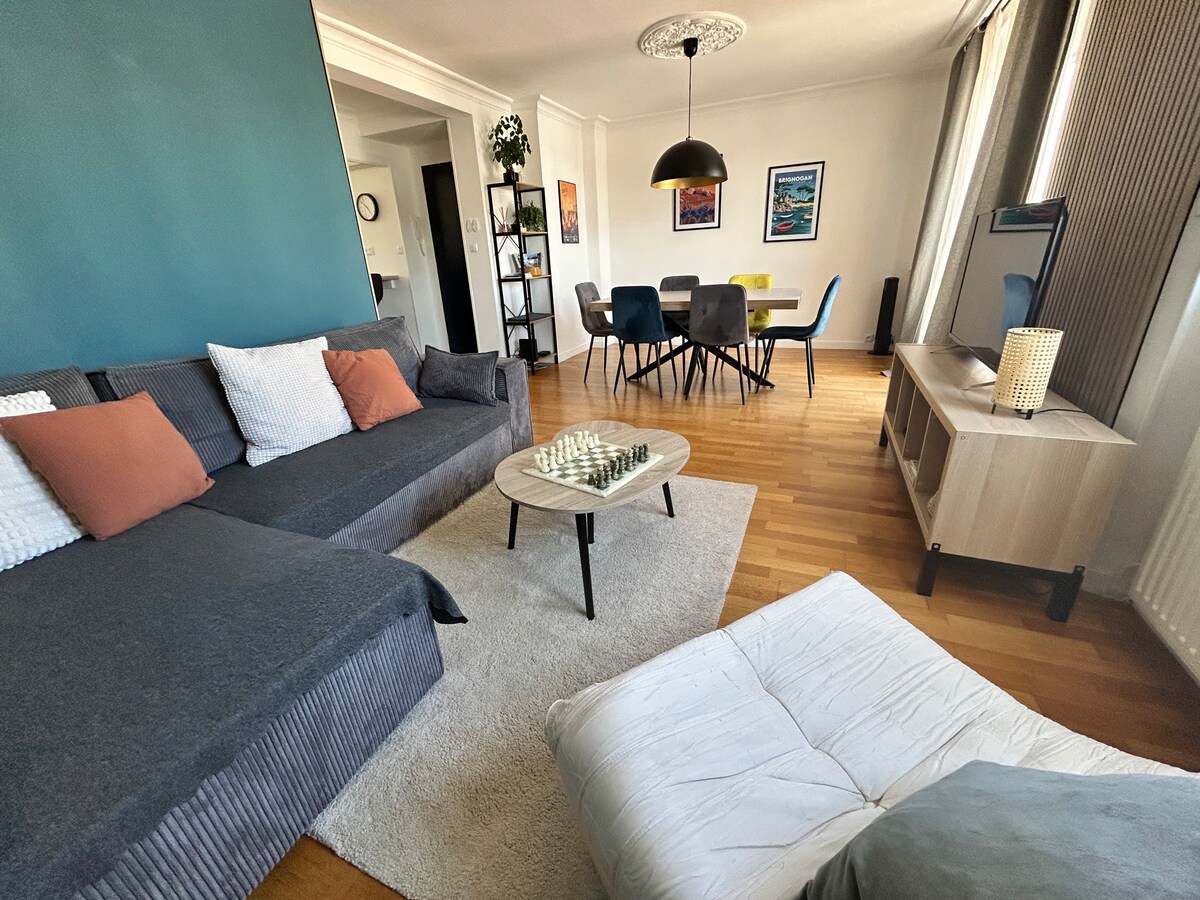 最近翻修的公寓組成如下: -客廳 -設備齊全的廚房 -衛浴 -Loggia -獨立廁所 -洗衣機/烘乾機區域 - 1間睡房,配有180x200床、更衣室和浴室 -1間臥室配有140 x 200床 提供牀上用品、牀單、毛巾。 街上可免費停車,公寓距離電車、超級中心rue Jean Jaurès和許多商店步行不到10分鐘。