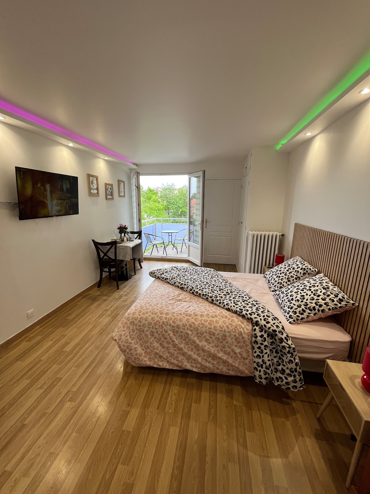 單間公寓,配有家具陽台,翻新成現代明亮的風格,位於市中心,靠近巴黎、法蘭西體育場、交通(電車T5 RER D地鐵13巴士168和361 )和所有商店。 舒適的睡眠區域、設備齊全的廚房、現代化的浴室、Wi-Fi和電視。 可自訂LED氛圍,瞬間改變氛圍,讓你享受浪漫、舒適的氛圍。 小露台是真正的加分! 在陽光下享用咖啡或放鬆的夜晚。 私人泊車位。