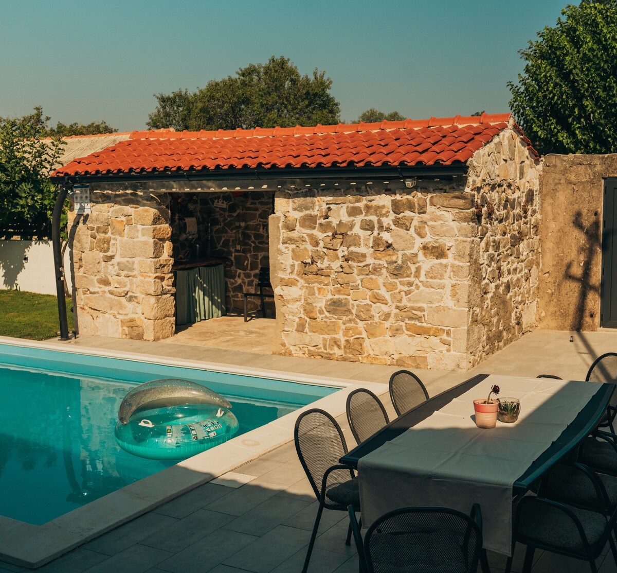 Relax and recharge at Holiday Home Nena, a private countryside escape near the Dalmatian coast. Surrounded by peace and nature, the house offers 3 comfortable bedrooms, a modern living space, and a fully equipped kitchen. Spend your days by the saltwater pool, enjoy BBQ dinners under the stars, and explore nearby beaches just 10 minutes away. Pet-friendly, family-friendly, and designed for pure relaxation.
