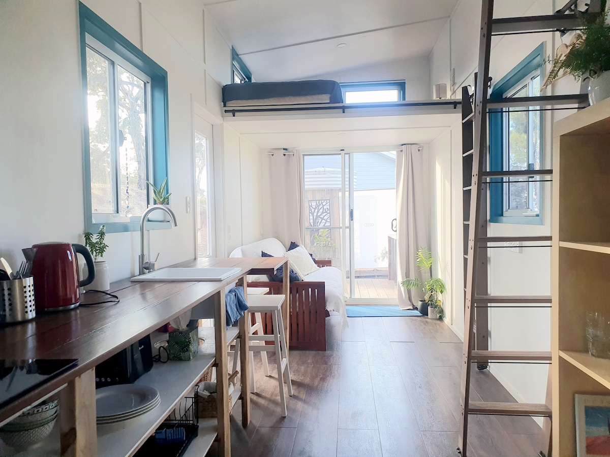非常適合您的浪漫假期!我們的戶外浴缸讓房客可以欣賞大自然所提供的一切!當您凝視星空時,保持溫暖,或者當您在甲板上放鬆時,看著我們的新生羔羊四處奔跑玩耍!此迷你屋配備所有必需的設施,包括茶、咖啡和早餐、免費WiFi、提供所有串流服務的iPad、戶外浴缸、可通往露臺的淋浴間和火坑,讓您在寒冷的夜晚使用。