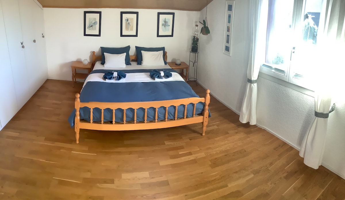 The perfect place for those seeking peace and quiet and lovers of nature and beautiful spaces. This exclusive apartment is located on the top floor of a completely renovated detached farmhouse. Hiking or skiing … shopping or sightseeing in Lucerne or Interlaken ... or simply enjoy the lake in its shimmering colors. Surrounded by countless opportunities to discover Central Switzerland. The place for a break, vacation or your perfect honeymoon. 4 Mountainbikes (shared) Air conditioner (Summer)