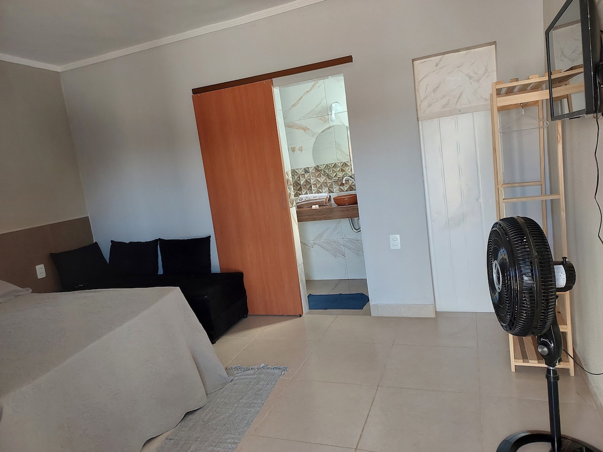 該套房是一間浪漫的住宿,附屬於Vila São Jorge(Alto Paraíso de Goiás區)的Pousada Flor de Debora ,距離Chapada dos Veadeiros國家公園入口1公里。 配有兩間臥室(一間配有標準雙人床,另一間配有單人床)、冷氣、迷你吧、私人浴室和私人休息區,配有觀賞植物和吊床。 我們還有公共區域,有吊床、桌子和一個美麗的篝火空間,讓您在大自然中感到舒適。歡迎!