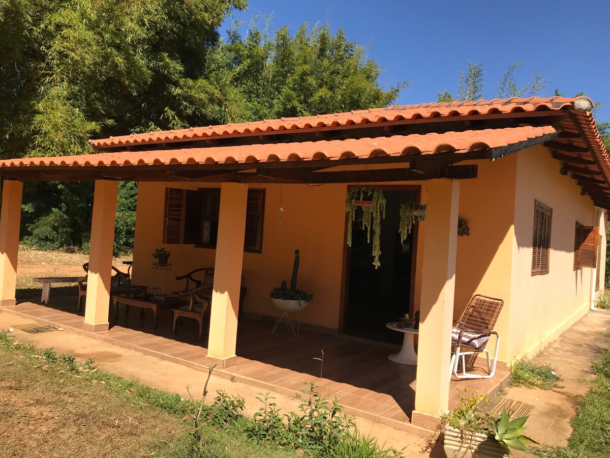 距離戈亞斯市 4.5 5 公里的農場,位於公路邊緣,設施齊全,讓您有家的感覺。 房子配有電視、網路、沙發、冰箱、兩間臥室配有風扇、廚房配有基本用具、02個燒烤爐、吊床和後院淋浴。我們還有 Vermelho河和 Paciência溪流,它們從房子底部流過,距離房子約350公尺,可以進去洗澡。 在最寒冷的夜晚,我們的後院有篝火空間!!!!