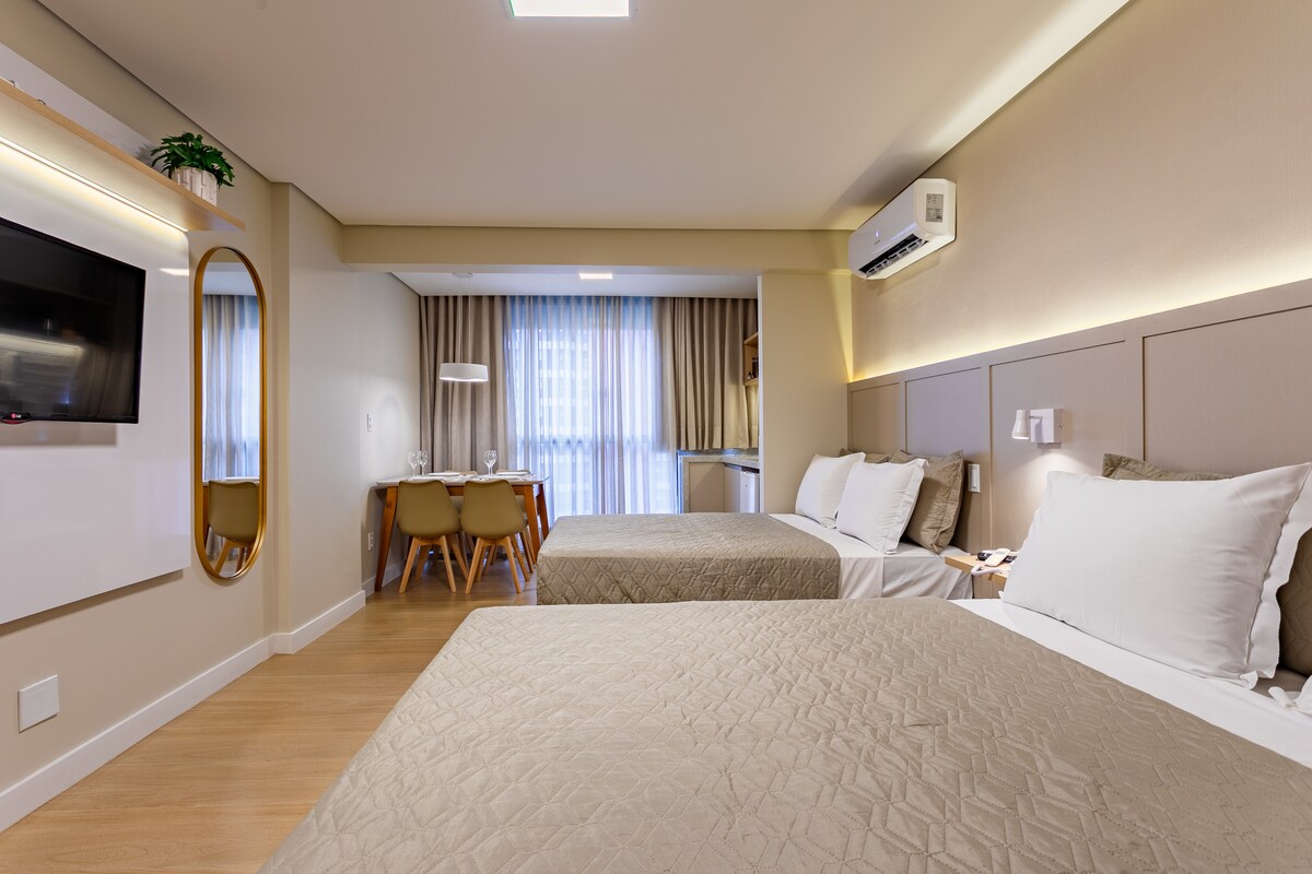 適合那些在巴西利亞市中心不放棄舒適和優雅的人! 35平方米的公寓,位於酒店內。 無論是短期或長期住宿,你都可以享受如家一般的舒適體驗。 私人和安靜的環境、大床、高級床上用品和配備電磁爐、微波爐、迷你吧、咖啡機的迷你廚房。 陽台、車庫和使用健身房、游泳池、桑拿和餐廳。 完美的位置: SHN、Esplanada、購物商場和公園。 在巴西利亞享受獨特體驗