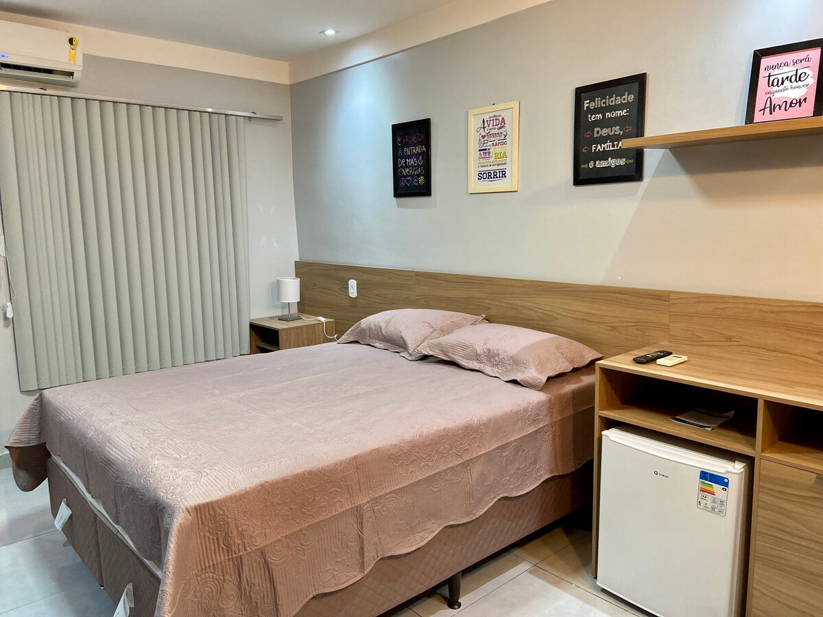 這間現代Loft位於全新建築物中,非常適合情侶和旅客入住: ✅ * *加大雙人牀* * (高級牀單) ✅ * *泳池、健身房、燒烤區和全景露臺* * ✅ * *超高速Wi-Fi * * (光纖)和* *配備Netflix的智慧電視* * ✅ * *設備齊全的廚房* *、洗衣機和空調 ✅ * *提供免費洗漱用品* *和必需品 位於* * Blue Building (Rua dos Caripunas 1016) * *的安靜位置–非常適合放鬆或遠距工作!