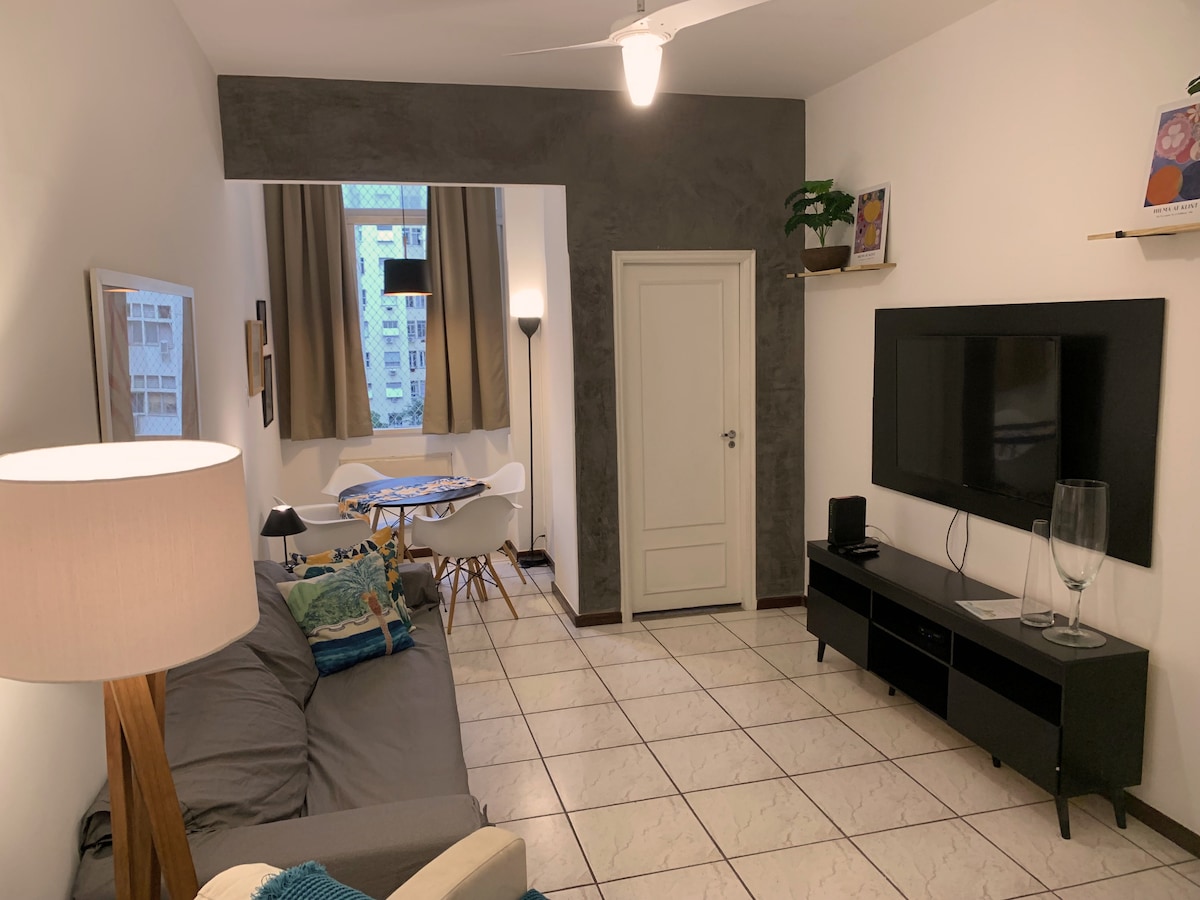 在科帕卡巴納(Copacabana)醒來,從窗口欣賞美麗的海景。 我們的公寓距離海灘不到一個街區,提供您在里約優雅而難忘的住宿所需的所有現代舒適設施。 這間公寓有2間睡房、2間全功能浴室、舒適的客廳、設備齊全的廚房、每間房間都有冷氣,非常適合家庭、情侶或朋友一起旅行。 周圍有咖啡店、餐廳、雜貨店和藥房,步行即可抵達。