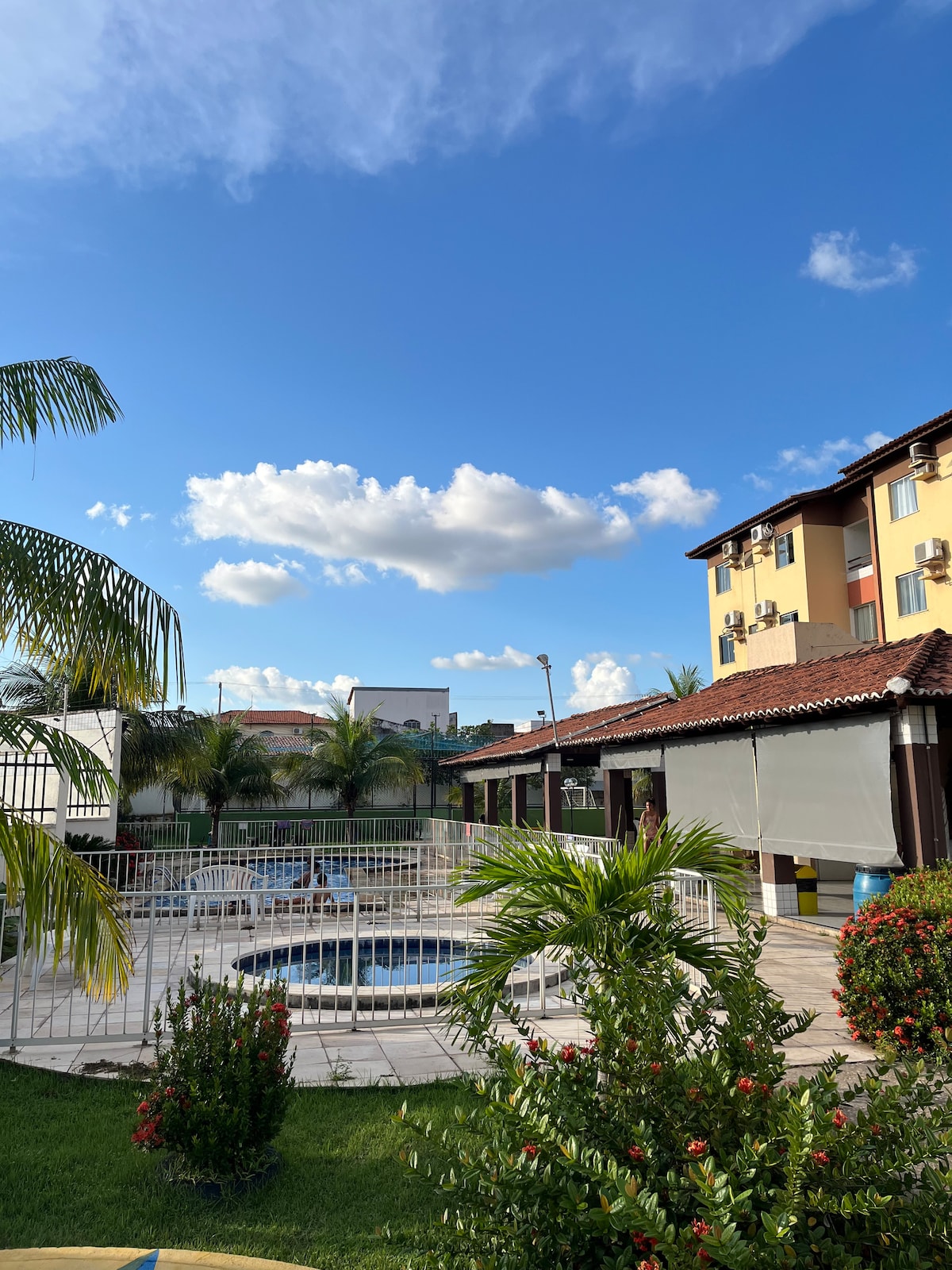 非常適合前往Jalapão的人士入住。 機場和市中心之間! 一樓公寓,自助入住,更加方便 舒適入住,靠近Hospital do Amor ! (您可以步行) ,非常靠近麵包店、超市、洗衣店和其他一切! 全新、舒適的床墊、床單和浴巾,以及許多愛心等待您入住我們的公寓! 全新翻修的公寓! 公寓內的泳池,讓您從這種熱氣中冷卻! Alexa可以享受聲音!