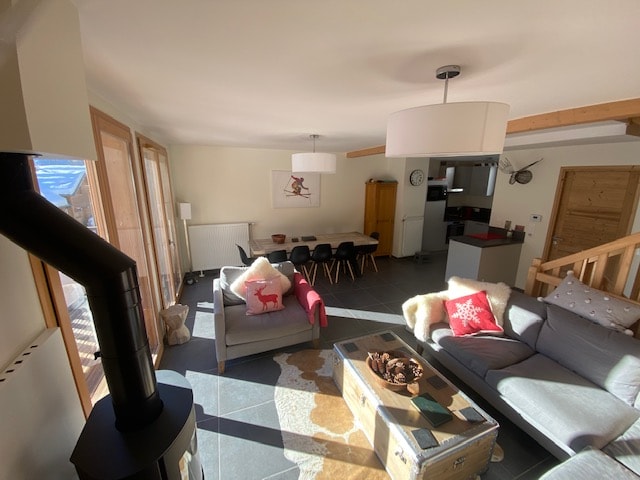 Une vue panoramique époustouflante sur les montagnes depuis le balcon, une pièce à vivre tout bois, grande hauteur sous plafond, une atmosphère qui invite à la détente... Le balcon s’ouvre sur un terrain en pente bordé par un ruisseau, discret selon la saison avec en fond sonore, le charme discret des clarines. Une immersion nature totale. Chambre intime, parking, accès facile toute saison, local matériels. Draps, serviettes, TV, internet fibre. Check-in libre. Idéal pour un duo en sérénité !