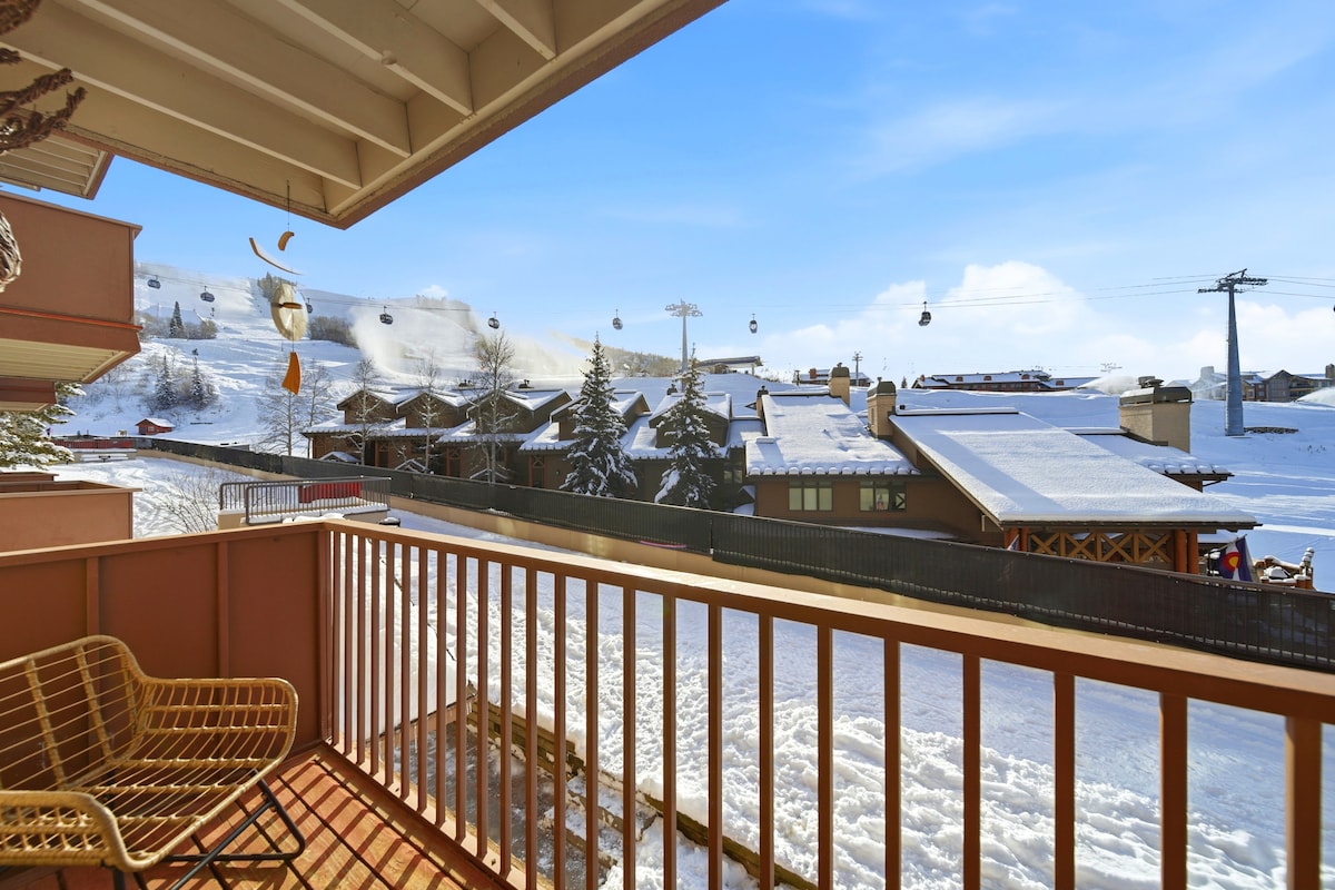 這間位於Steamboat Springs Ski Resort的一樓滑雪公寓由@bonadventuresllc出租,距離纜車、餐廳、酒吧和商店僅幾步之遙。 享受斜坡景觀、現場按摩浴池、桑拿房、免費停車位和滑雪儲物櫃。 特大雙人牀+標準雙人沙發牀。 無需在前台辦理入住手續,您可以直接前往您的舒適度假勝地,並立即開始您的Steamboat假期! 非常適合滑雪季節,也是夏季徒步旅行和騎單車的理想選擇,步道就在門外!