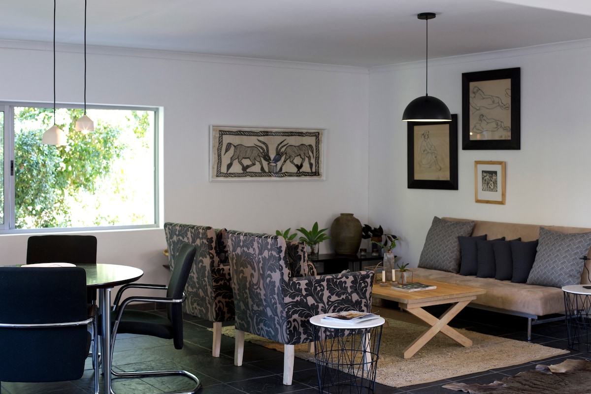 非常漂亮且價格實惠的住宿。 在這間時尚房源與全家或朋友一起共享天倫時光,開車3分鐘即可抵達美麗而歷史悠久的斯泰倫博斯鎮! 冬天在豪華床墊上舒適入睡,夏天在泳池中放鬆身心。 在城裡眾多精緻的餐廳用餐,或探索附近的許多葡萄酒農場,或在設備齊全的廚房或烤肉架上烹飪美食。 享受不受限制的高速WiFi和智慧電視。