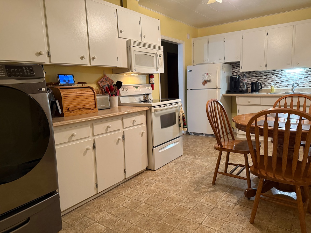 整間3間臥室的姻親套房,配有獨立入口。 設施包括:全尺寸冰箱、室外燒烤架、烤麵包機、微波爐、32電爐、有線電視、WiFi、撞球桌、飛鏢板、吹風機、全尺寸浴室、全尺寸梳化。 您可以獨自享受整套公寓。無需與他人共用。 僅限夏季-配有乾裂木材的火坑區域。 適合寵物入住。也在ATV路線上。 我們要求不要在BNB內烹煮魚類。 下一位旅人可能對魚味過敏,導致嚴重的健康問題。