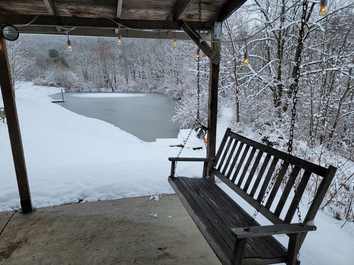 Enjoy the secluded cabin & camper on 10 acres of land with walking paths, valley views, pond, woodstove, fire pit, zip line, row boat, kayaks, pavilion, tree swing. 14' x 28' cabin with 14' x 28' pavilion overlooking pond for a peaceful stay rain or shine. Gas grill, microwave, electric heater, toaster oven, small fridge, Indoor flushable off the grid toilet, wood stove & pet friendly experience for the whole family. Close to local country stores. Camper included for parties of 5 or more.
