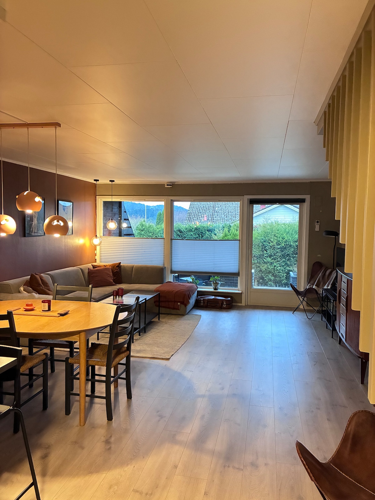 獨立房屋,有5間臥室和設備齊全的廚房。2間客廳和配備嵌入式光纖WiFi的電視。 提供PlayStation和Xbox。 可提供嬰兒牀。2間浴室和2間廁所。 此外,如有需要,還有可能提供充氣牀墊和沙發。 溫水遊泳池 提供燒烤和戶外客廳。 在自己的房子裡停車。 斯塔萬格和卑爾根之間的完美地點。 在這裡,您可以前往挪威西部的所有主要旅遊體驗。