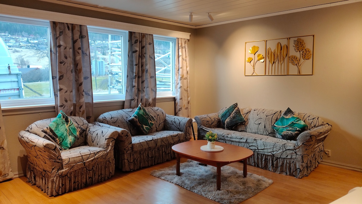 位於安靜區域的現代公寓,步行即可抵達Stryn市中心。 設備齊全的廚房,配備舒適住宿所需的一切設備情況。 浴室配有淋浴間、盥洗室和洗衣機。 包括牀單、毛巾和洗衣房。 客廳配有雙人牀( 150公分)和沙發牀( 150公分)的臥室。 可供小孩使用的旅行牀和高腳椅。 免費WIFI。帶Chromecast的電視。