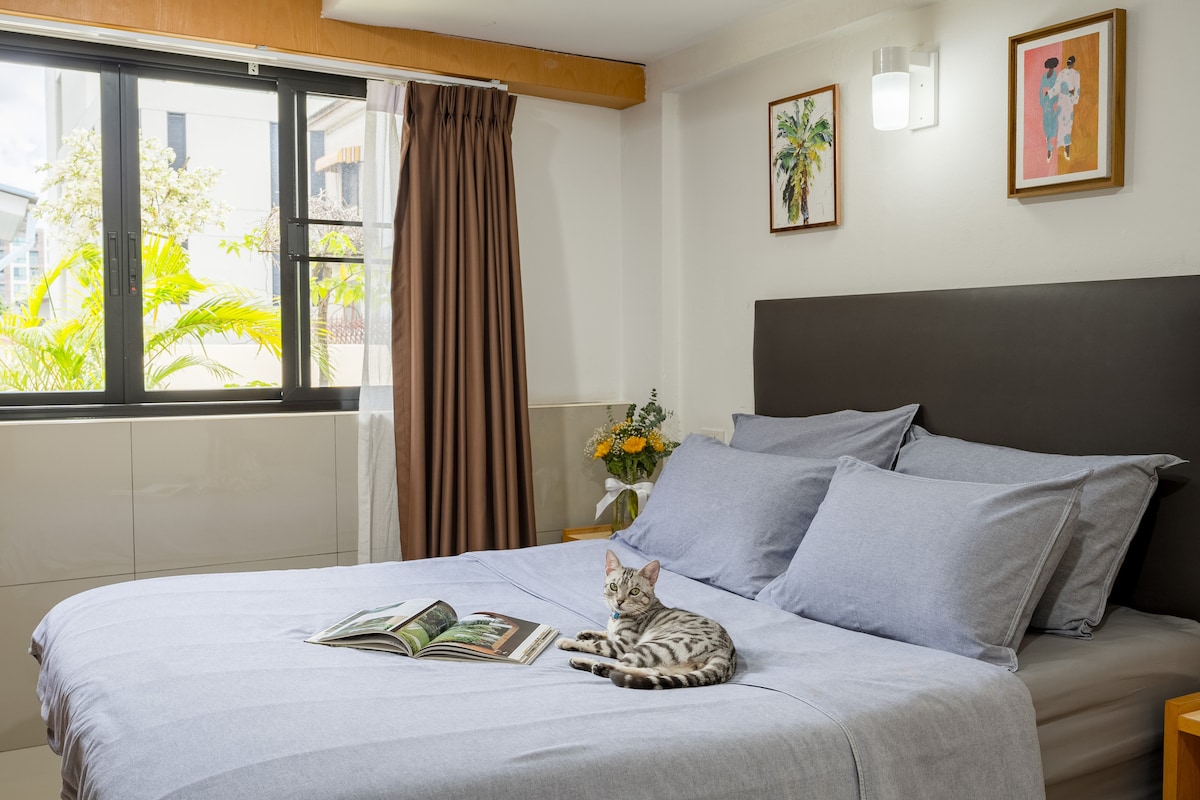 寬敞的雙人房,天花板高,自然光充足。 這間客房位於曼谷舊城區一間迷人的精品酒店內,提供舒適和溫馨的氛圍。 步行即可抵達大皇宮、卧佛寺、晨市和當地公園,距離Sam Yot地鐵站僅8分鐘路程。 一個寧靜的度假勝地,您可以在白天探索城市的歷史景點,然後回到寧靜、通風的空間休息。