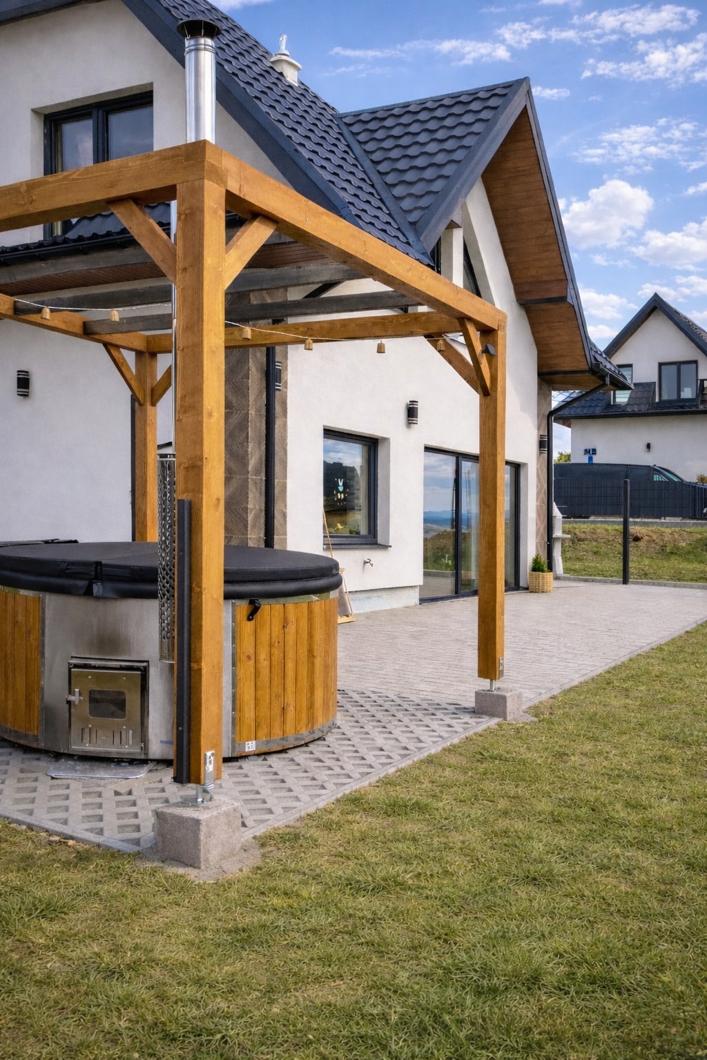 小屋位於山林間,設備齊全, 小屋面積為35平方米,配備了正常運作所需的一切。 廁所、淋浴間、廚房連接客廳和臥室,從客廳您可以出入陽台,從陽台可以看到整個空地和Bielskie Tatras。 大樓的屋頂有一個大露台,您可以在天氣好的日子做瑜伽或放鬆。 提供按摩浴池和桑拿,需額外付費 峇里島 150 PLN - 2.5 小時 桑拿 150 波蘭茲羅提 - 2.5 小時