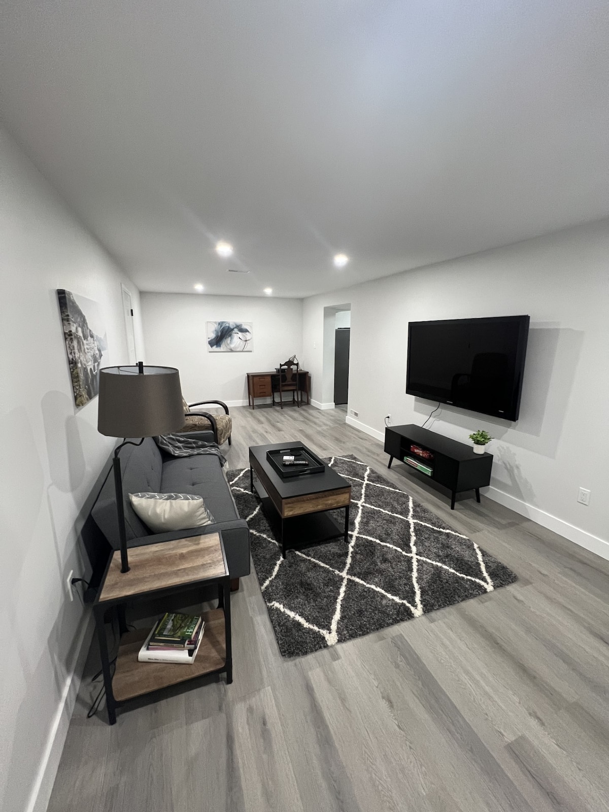入住這間全新、設備齊全的私人地下室公寓,享受舒適放鬆的住宿體驗。這個乾淨、無寵物和無菸的單位剛剛全面翻新。 這個現代化的空間包括一間獨立臥室、一間華麗的浴室、設備齊全的工作站、廚房桌子和用餐區域,以及配有Firestick的60吋平面電視。 我們希望您能享受順暢放鬆的住宿體驗,我們可以24小時全天候透過電話或簡訊聯絡。