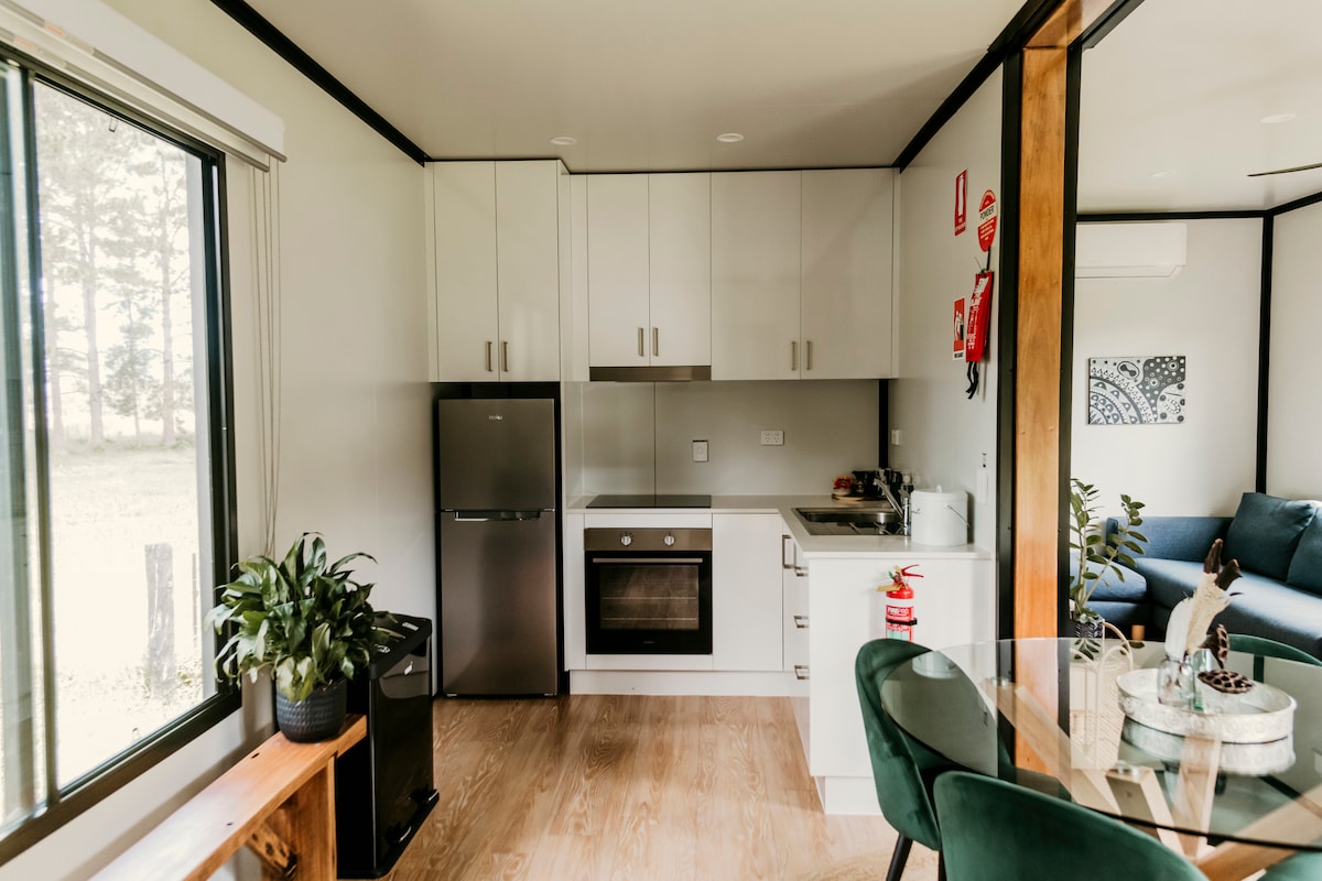 Belongil海灘對面的現代新單間公寓,步行10分鐘即可抵達市中心,步行3分鐘即可抵達著名的樹屋餐廳和酒吧。 單間公寓與主屋有獨立入口。 廚房配有全冰箱、熱盤、微波爐(位於冰箱上方的櫥櫃)和空氣炸鍋。 有迷你weber燒烤爐供旅人使用。 這間小木屋配備了您在海邊度假所需的一切,包括冷氣和風扇。