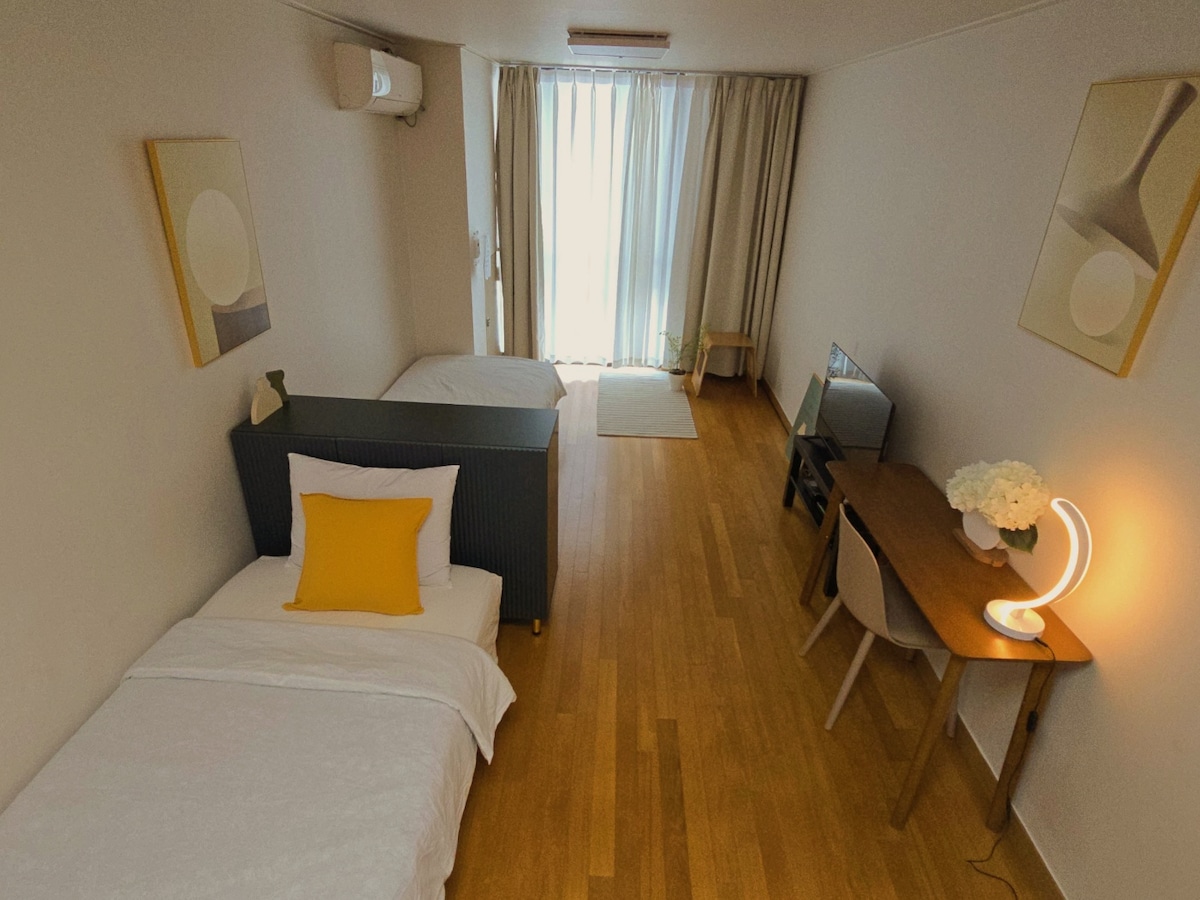 Just 30sec. 1st floor*Cozy*Hongdae Stn. 3Room4Bed.