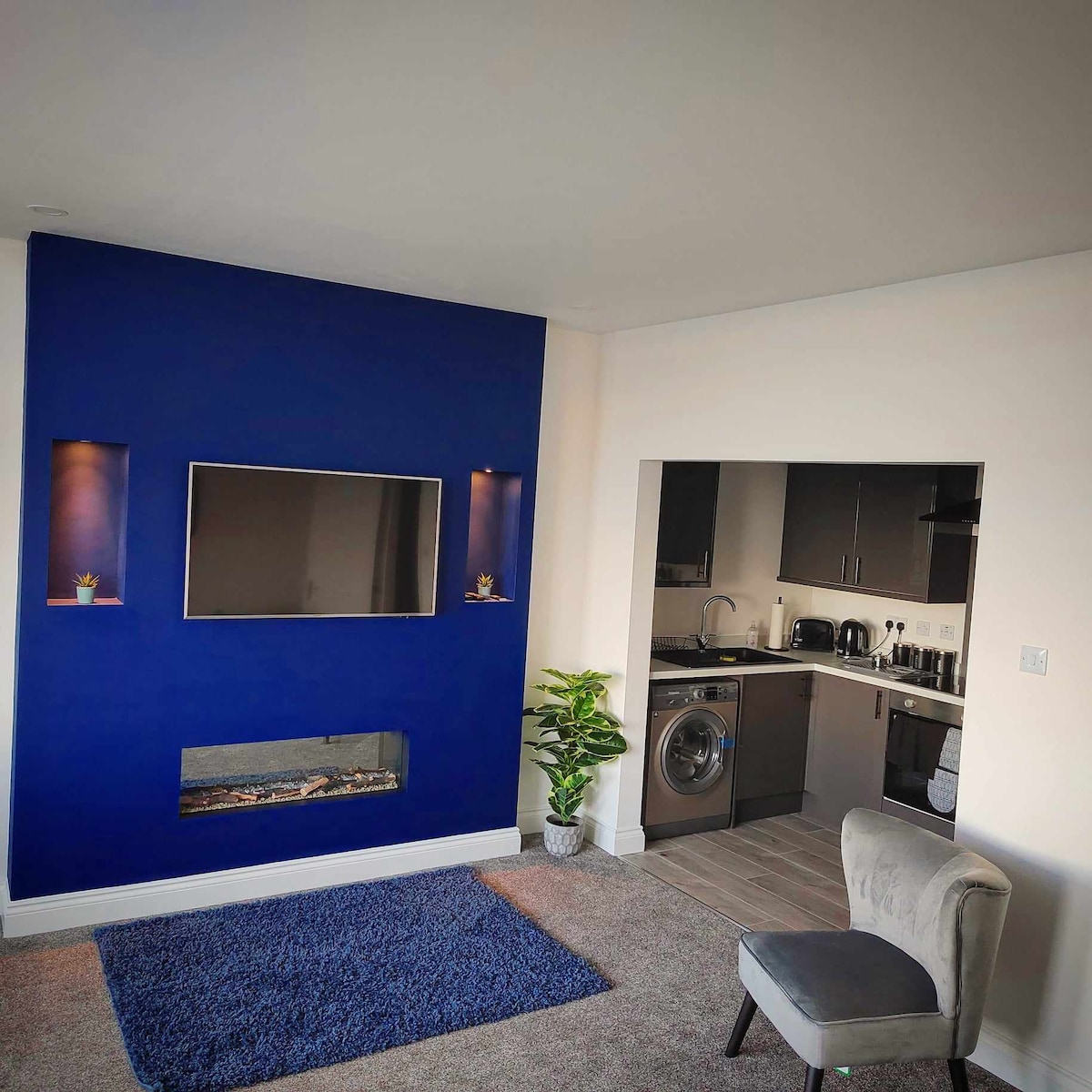 Beautifully appointed Beachside apartment with uninterrupted views of Laxey Harbour, Laxey Bay & the Irish Sea from the open plan lounge and kitchen. Bedroom has a superking bed which converts to 2 singles. Luxury bathroom with freestanding bath (with sea view) huge separate shower. Open plan lounge & kitchen with floor to ceiling window overlooking the beach & harbour. Willow & Hall double sofa bed with luxury mattress available if required. free Wifi.