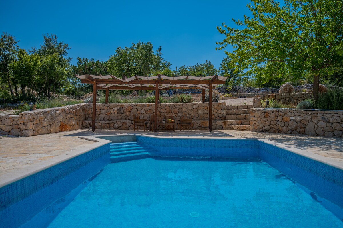 我們很高興能在廢棄的生態民族村Humac提供克羅埃西亞最獨特的住宿之一。別墅可追溯到1880年,並於2020年全面翻修。該莊園由一棟160平方公尺的傳統地中海石屋和一個3000平方公尺的獨特花園組成,花園內有薰衣草和不朽花田,提供完全的隱私和寧靜。 這是一間設備齊全的4間臥室和5間浴室別墅,配有大露臺,配有按摩浴池和令人驚嘆的日落景觀