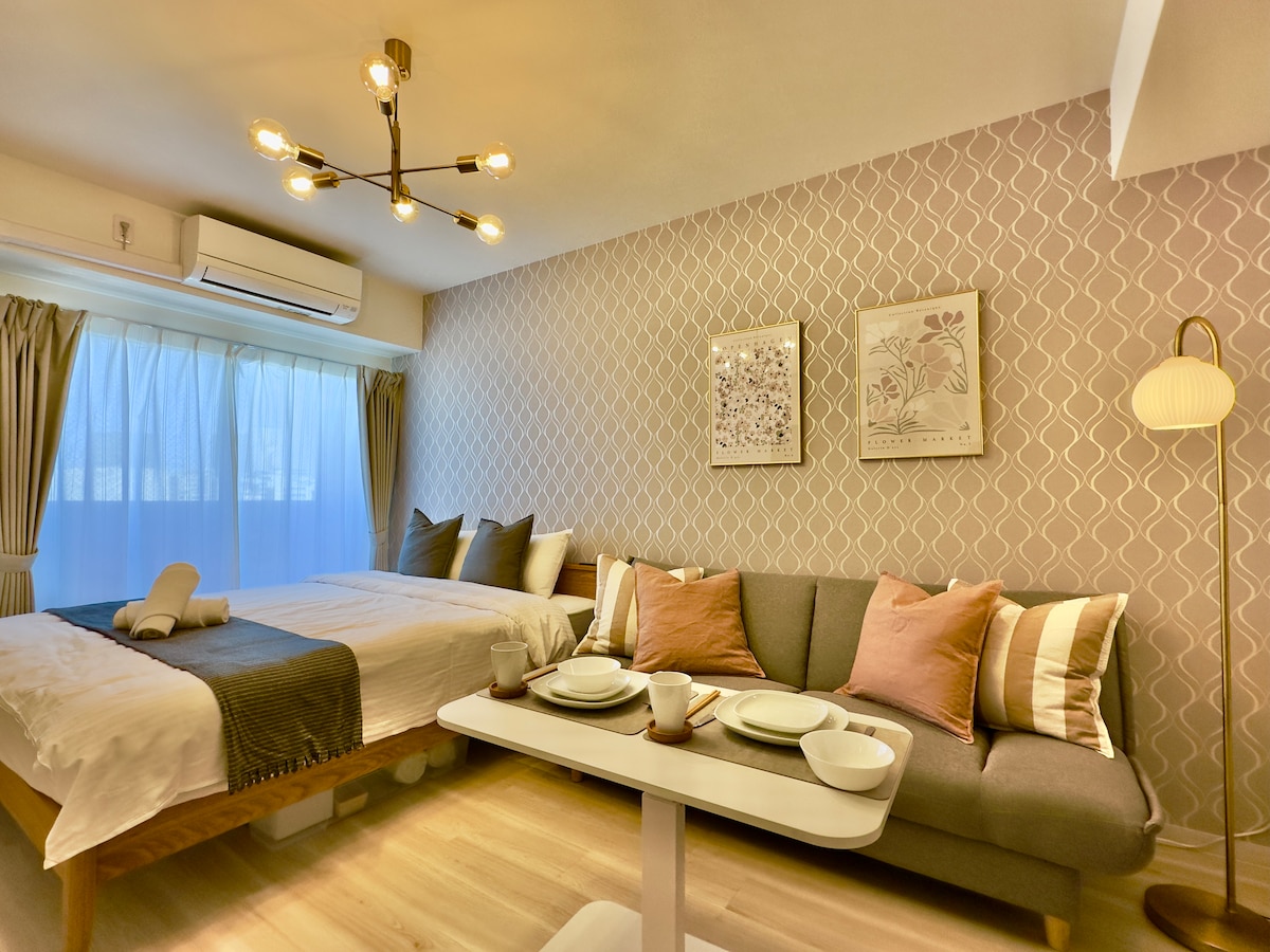 整套房源|全新装修|安静住宅区|关西机场直达|步行8分钟到天下茶屋站|温馨40㎡精致双人房|近市中心